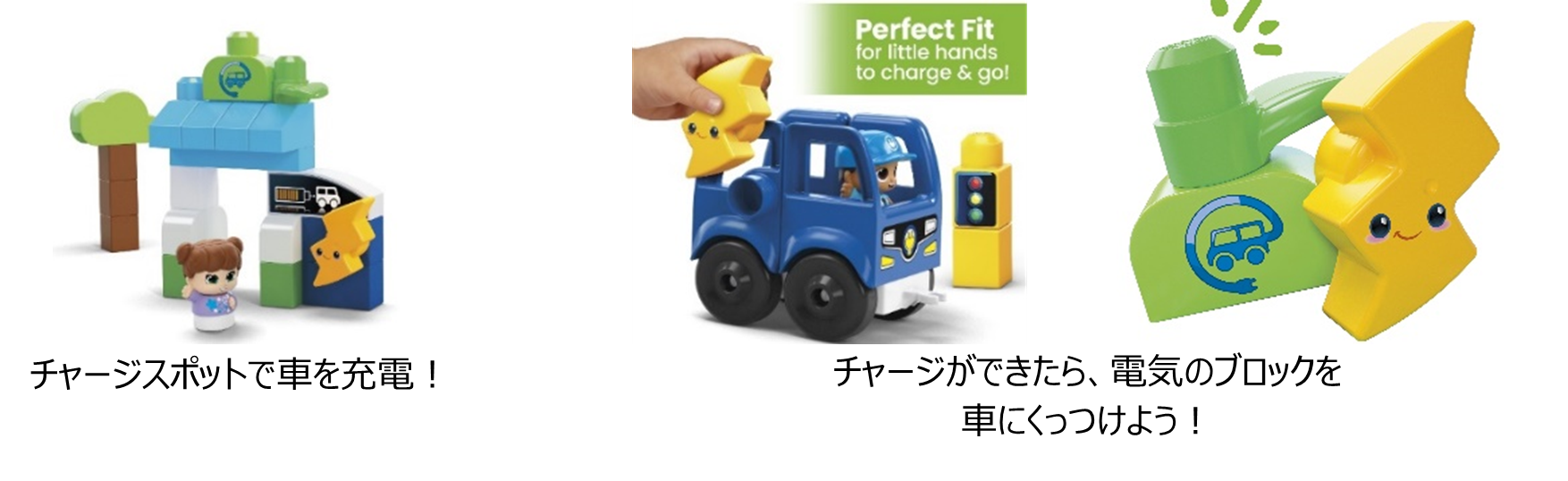 自動車とキャラクターを含めた全34ピースで、地球にやさしい移動手段について学ぶことができるブロックセットです。出発前に充電スポットで車に電気をチャージし、準備ができたら手で走らせてごっこ遊びを楽しむことができます。手先の器用さとともに社交性や情緒を育み、また環境にやさしいくらしに目を向けるきっかけともなります。友達と同乗することで車一台で移動できエコにつながるなど、様々な方法で環境について学ぶことができる商品です。