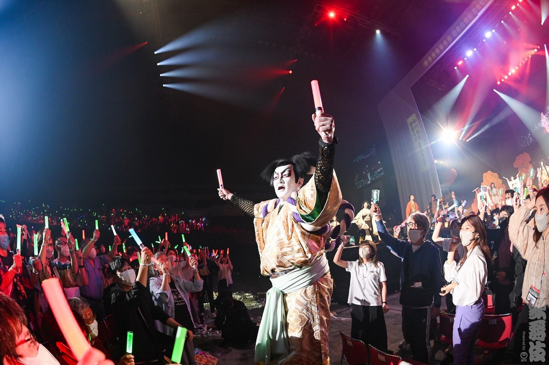 なお今回、30日13時公演には幕張メッセ公演初となる、澤村國矢が源頼光/袴垂保輔を演じるリミテッド・バージョンが開催され、超歌舞伎を初演時から支えてきた國矢が、確かな技術で、熱を持って頼もしく中心を担う姿に、長年見守ってきたファンは文句なしに感動しただろう。そして、本公演で陽喜が演じた金時役を獅童がパワフルで豪快に、國矢が演じた保昌役を獅一が誠実に真っ直ぐに演じた姿も印象深い。次世代の俳優たちに活躍の場を、という獅童の思いからはじまったリミテッド・バージョン。カーテンコールでは、ファンからの大きな歓声と拍手を全身で受け止める國矢の背中を、獅童も感慨深げに見つめていた。同じ役でも別の俳優が演じると、角度の違う魅力が見えてくる――歌舞伎ならではの魅力をたった2日間で味わえる大きな挑戦も、超歌舞伎ならではだった。