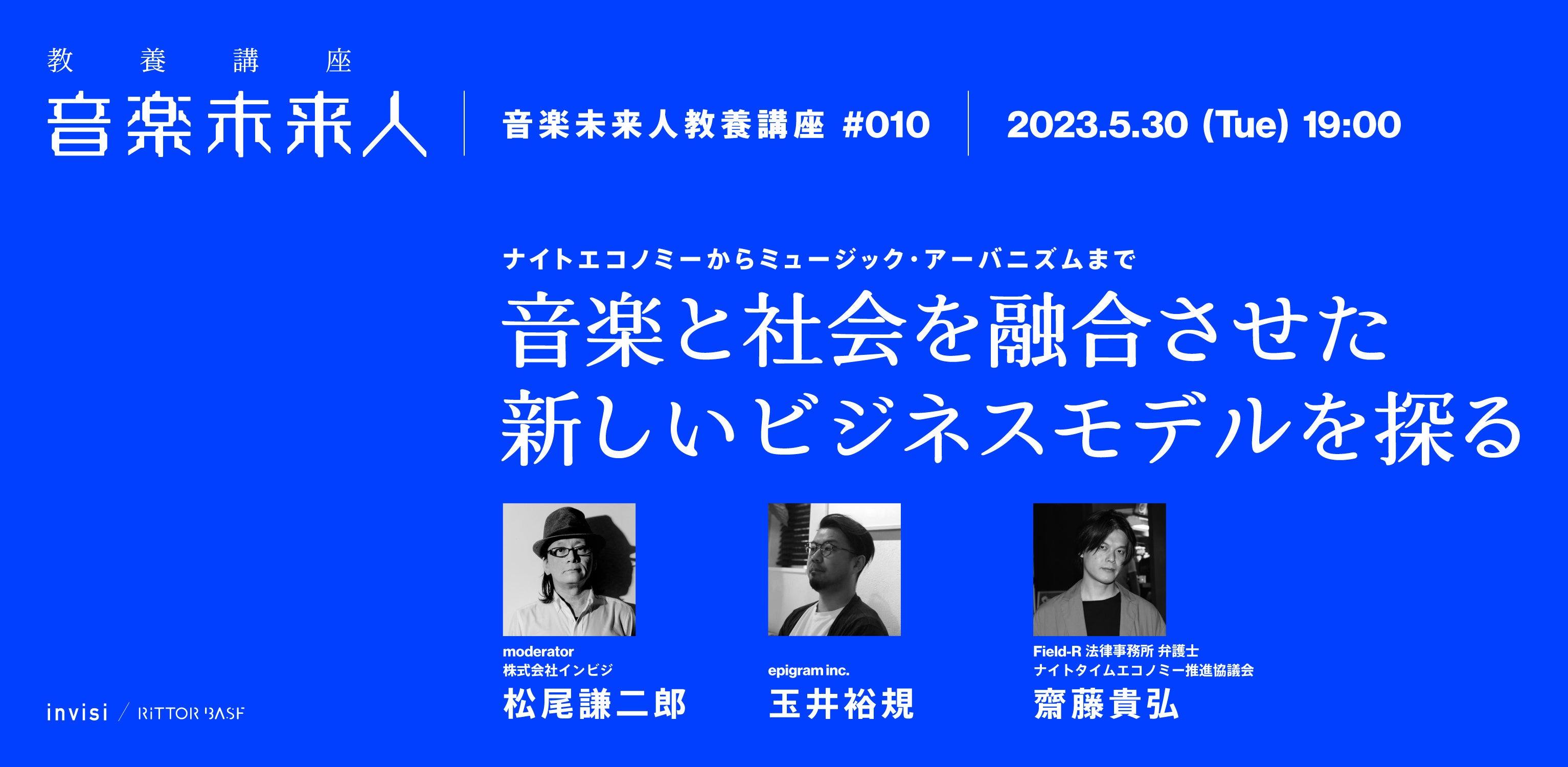 音楽ビジネスの未来を多彩なゲストと考えるイベント「音楽未来人教養講座」第10回を5月30日(火) に開催することが決定しました。