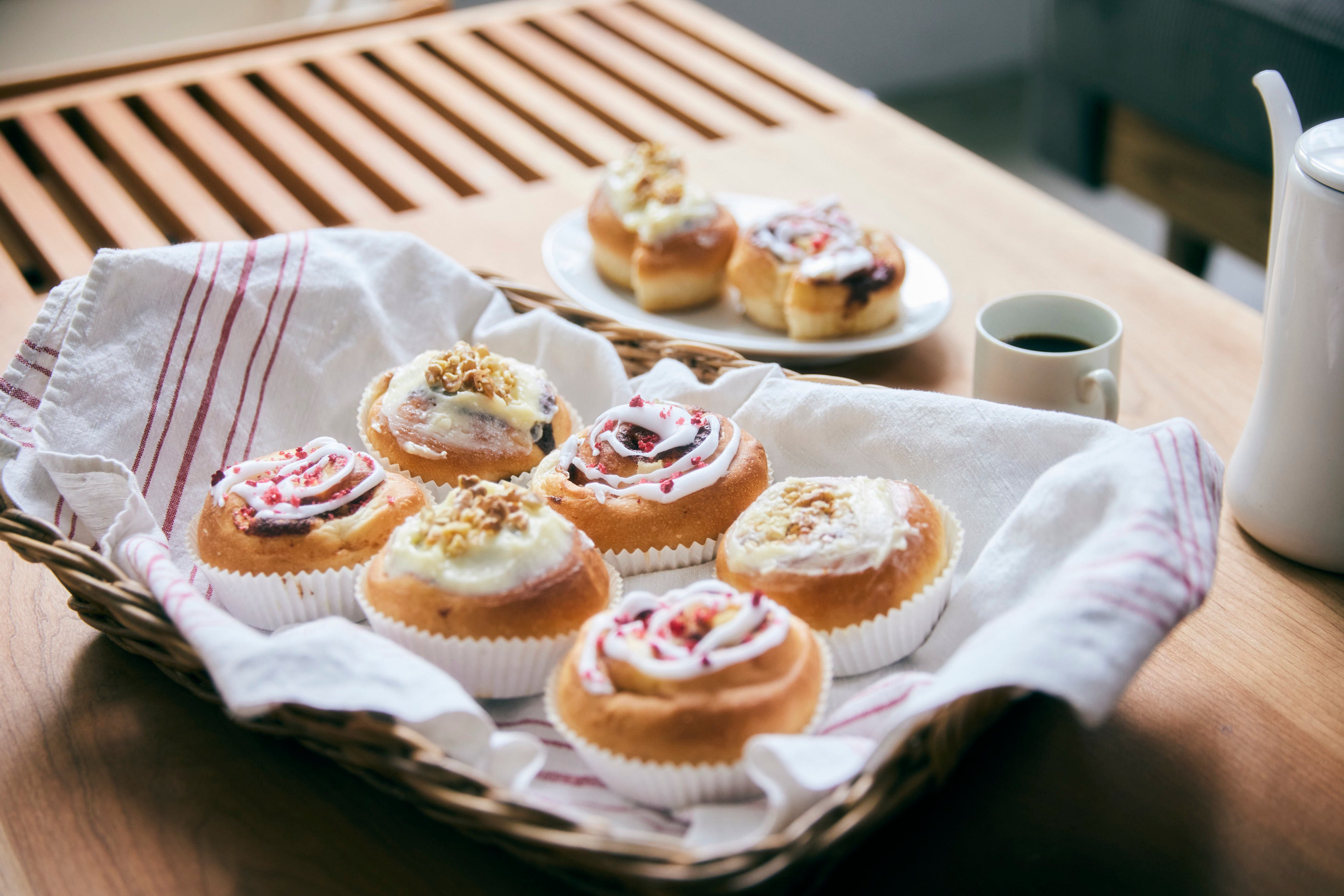 2月に好評を得たwith life bakeryとのコラボレーション第二弾として、今回渡辺が監修したのは、シナモンロール。前回に続き、with life bakeryオリジナルの食パンkinariをベースにしたシナモンロールは、kinariの特徴を活かした優しい甘みとふわりとした食感がポイント。たっぷりと入れたシナモンシュガーと、濃厚なフロスティング、そして香ばしくローストした胡桃がアクセントのプレーンと梨のコンポートをトッピングした梨入りの2種。プレーンはフロスティングとロースト胡桃のコクがありながらも甘すぎず何個でも食べられるような軽さがあり、梨入りは、梨とドライラズベリーの爽やかな甘味が特徴。どちらもkinariをベースにしつつも、それぞれ個性の異なる、甲乙つけ難い自信の逸品となった。kinamonは、2種のセット販売で1セット1,500円(税込)。