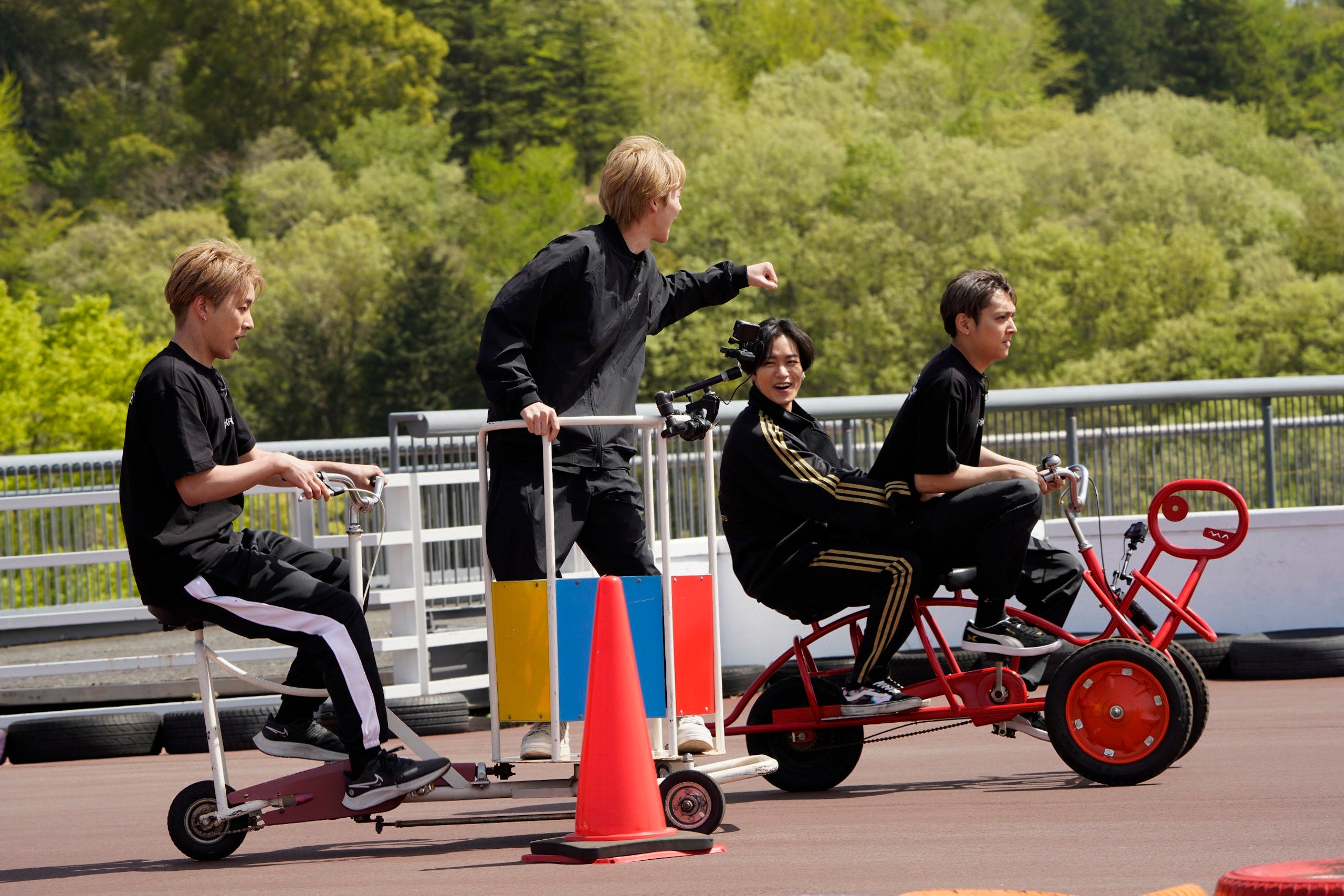 番組後半は、トレーニングでの数値を元にメンバーが3チームに分かれてチーム対抗戦へ。公道では乗ることができないユニークな形をした自転車を使用し、白熱したレースが行われます。