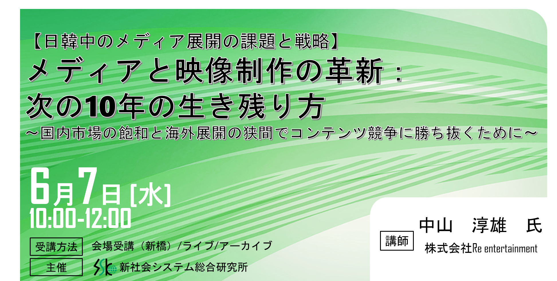 「メディアと映像制作の革新:次の10年の生き残り方」と題して、(株)Re entertainment 代表取締役社長/エンタメ社会学者 中山 淳雄氏によるセミナーを2023年6月7日(水)に開催!!