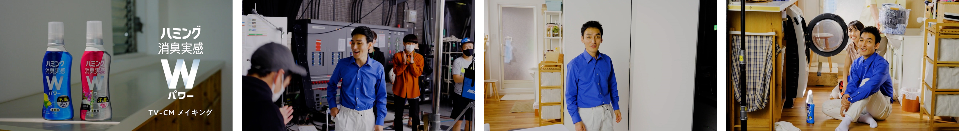 今回の新CM撮影は、草彅さんが「この家族と僕の関係ってなんなんだろね…?」と積極的に話しかけるなど、和気あいあいとした雰囲気の中で行われました。また、壁の穴から飛び出す撮影のシーンでは、伝えたい気持ちの勢いのままセットの壁にぶつかる、前のめりな草彅さんが印象な撮影となりました。また、CMインタビューでは、新CMの見どころや、撮影エピソードに加え、しつこい汗臭・脂臭まで、着用中ずーっと無限消臭!の「ハミング消臭実感Wパワー」ににかけて、“二刀流=Wパワー“はすごい!と思う人や、ご自身を「ずーっと無限〇〇(な人)」で表していただいています。