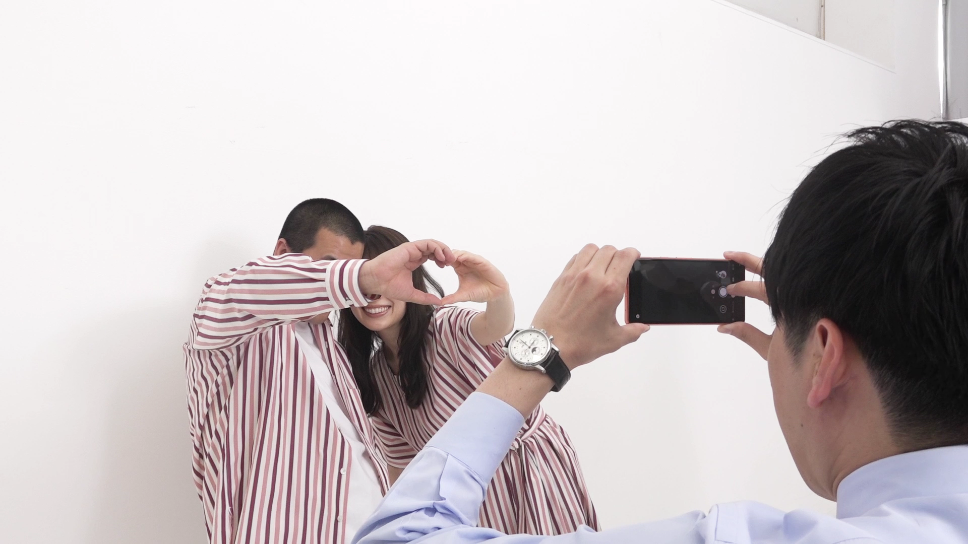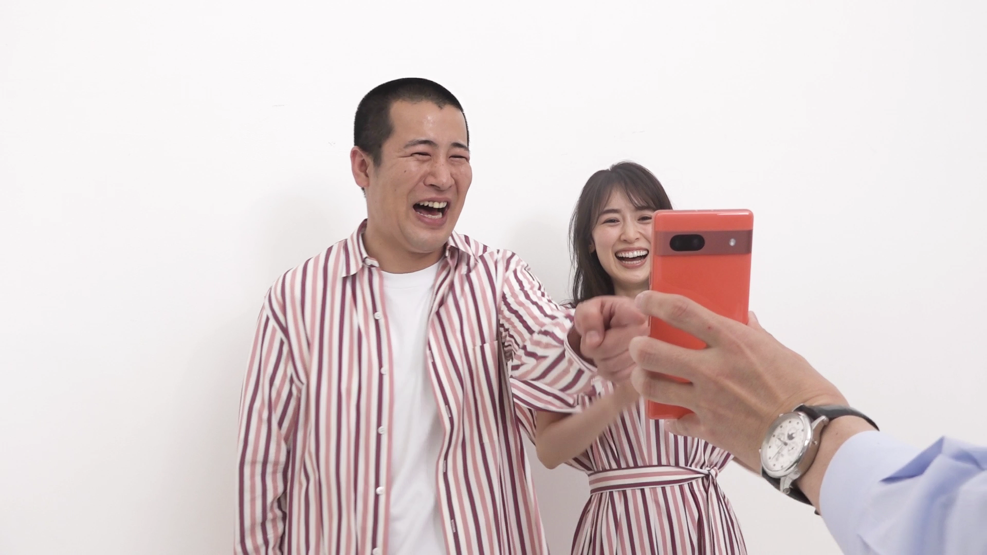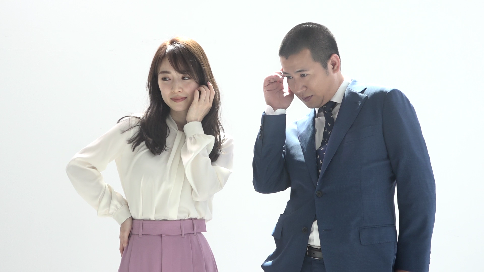 ペアダンス動画の撮影では、ダンスの最後に2人が手でハートマークを作るのですが、手がなかなか上手く重ならず、きょんさんが「(手が)逃げて逃げて」とツッコミを入れると、泉さんは涙を流しながら爆笑。撮影後、コットン西村さんの指示で、ハートマークでツーショット撮影。きょんさんは「待ち受け決定」と嬉しそうに西村さんのスマホで写真を確認すると、泉さんの顔しか映っておらず「お前、写ってね~じゃね~か!」ときょんさんが大声でツッコミ、現場が爆笑の渦に包まれました。