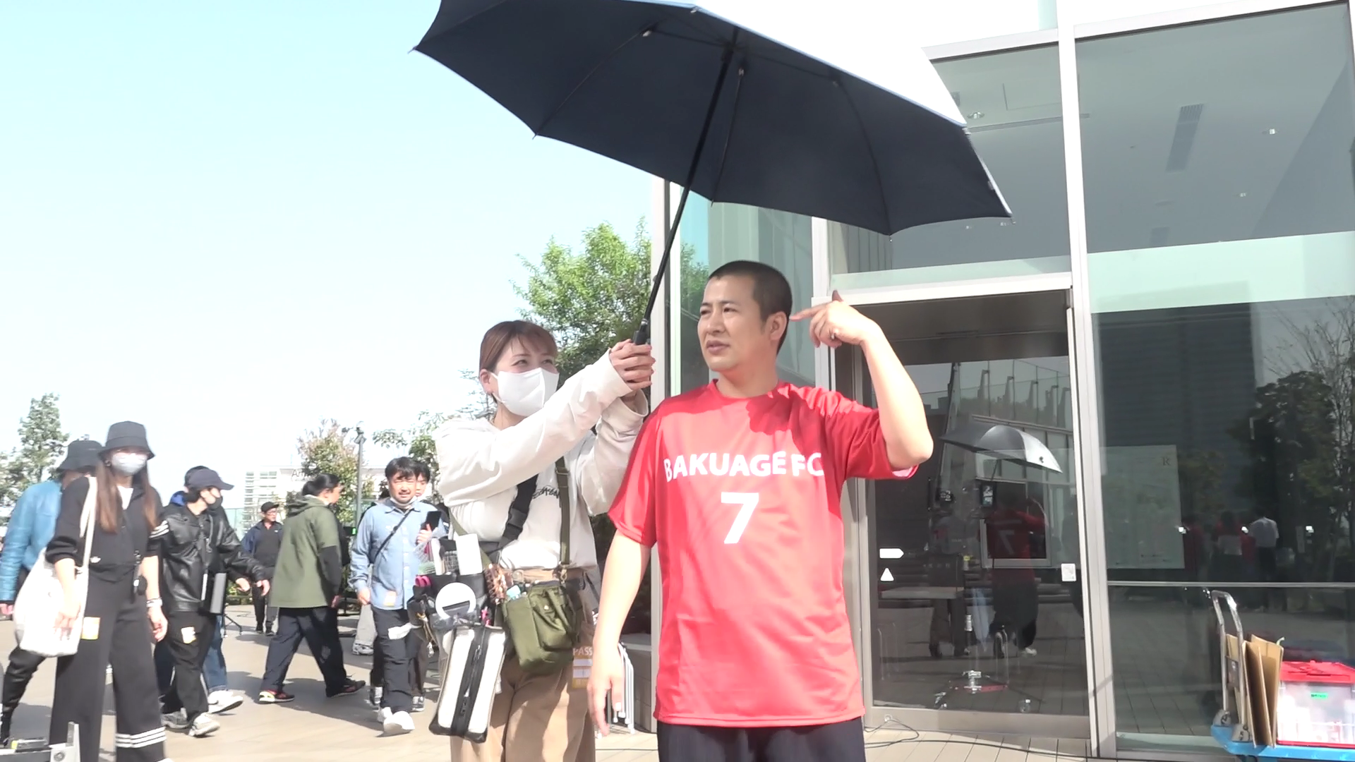 きょん:でっかいのよ。もう絶対に守るぞ!っていう意思の表れの傘。すごかったです。最初で最後ぐらいじゃないですか、あんな女優傘に入れるの。僕テンション上がって自分で持っちゃいましたもん。そのくらい良い経験をさせてもらいました。
