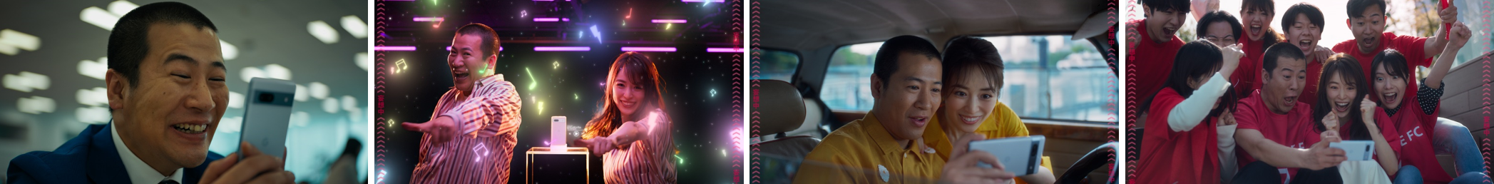 上司に怒られてパッとしない日々を過ごす主人公が現状を変えるためにスマートフォンを買い替え、消しゴムマジック機能を活用して、大勢が写る集合写真を憧れの先輩と2ショットした風に加工。その写真がキッカケで憧れの先輩との幸せ爆アゲな妄想がどんどん膨らんでいきます。しかしその世界に急にイケメン男性が現れ、主人公は再び落ち込みますが、最後は同じGoogle Pixelを買った先輩から2ショットのお誘いがあり、妄想だったはずの幸せが現実に訪れる、そんな内容となっています。今回、初めてドラマで主演を演じたきょんさんの渾身の演技と、泉さんのキュンとなる表情や仕草に注目です。