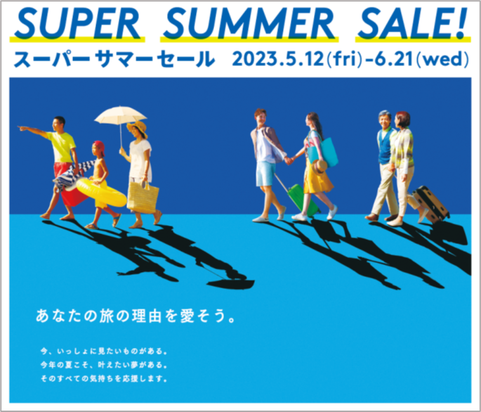 新型コロナウイルスの感染法上の分類が5類に移行し、入国時の水際対策も撤廃され、街中での暮らしも平時の様式を取り戻しております。そのような中、旅行を検討されるお客様に向けて「SUPER SUMMER SALE!」を例年より早めて開催いたします。