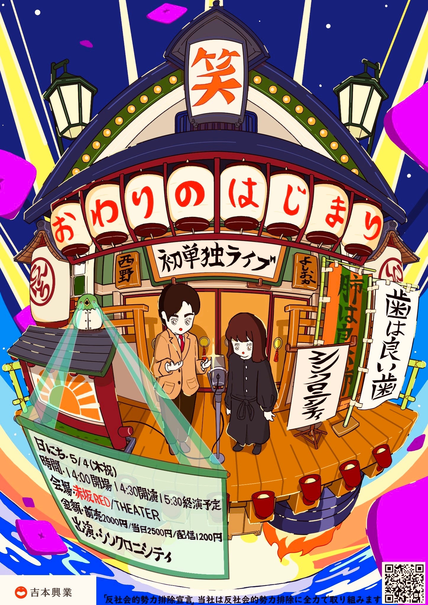 2023年4月に吉本興業に所属したばかりのお笑いコンビ「シンクロニシティ」。5月4日(木)に赤坂レッドシアターにて行われた吉本所属後初の単独ライブ「おわりのはじまり」は会場チケットが即完売し、見逃し配信も大好評で、販売期間を2度延長しているなど非常に注目度の高いコンビです。