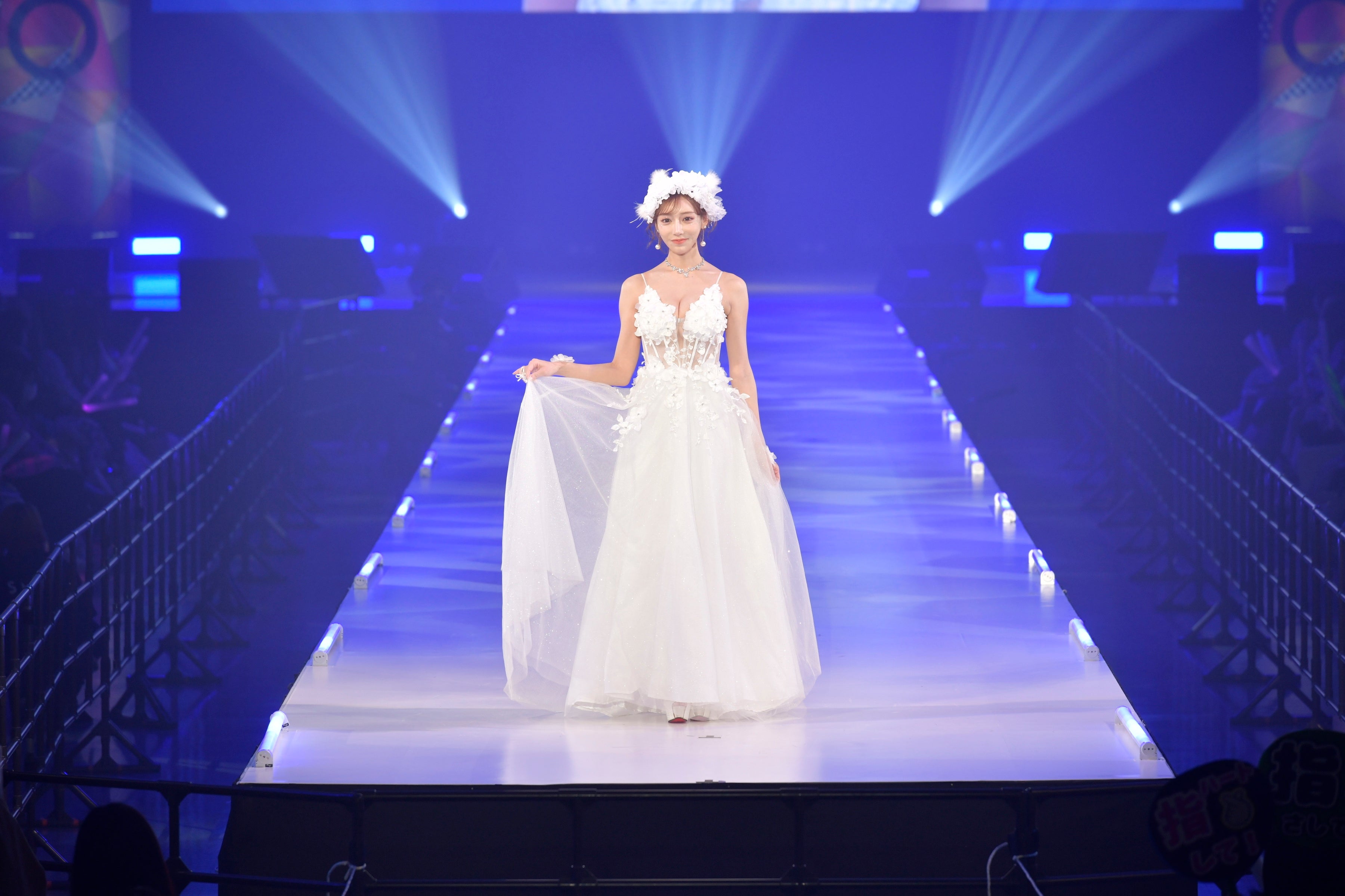 森咲智美伊藤桃々らが美しいドレス姿を披露した「Tikaステージ」では、明日花キララが4回連続のサツコレ出演を飾りました。最旬トレンドのシアー素材が特徴的で「とても可愛いけど実はセクシーなのがポイント」と語った白いドレスは、歩くたびにラメがキラキラと輝いて観客を魅了しました。