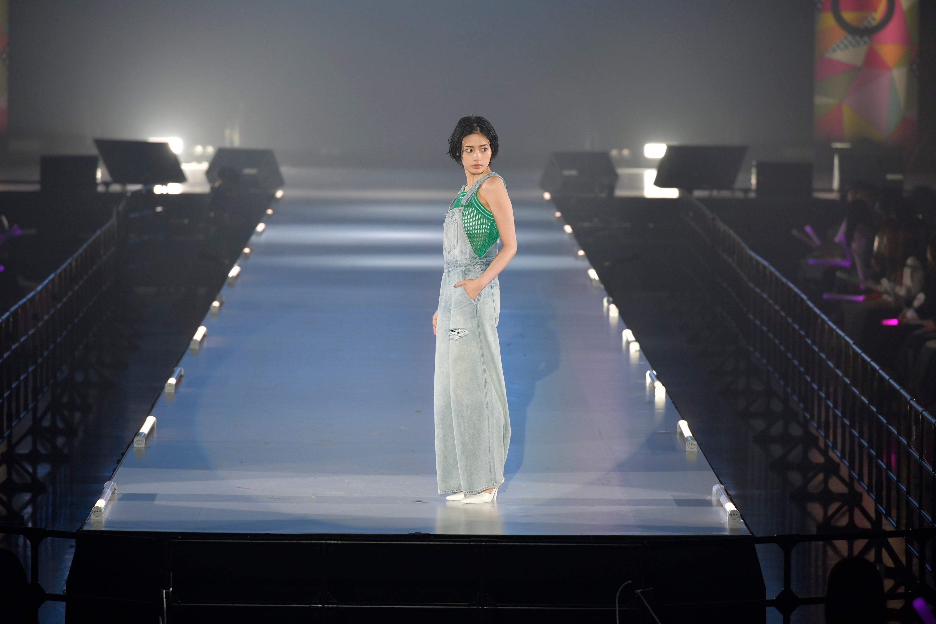「AEDDY STAGE」ではトレンチコートを涼しげに羽織ったアリアナさくらや、デニムのセットアップから美脚を覗かせた古田愛理らが洗練された大人っぽい着こなしで圧巻のウォーキングを見せました。