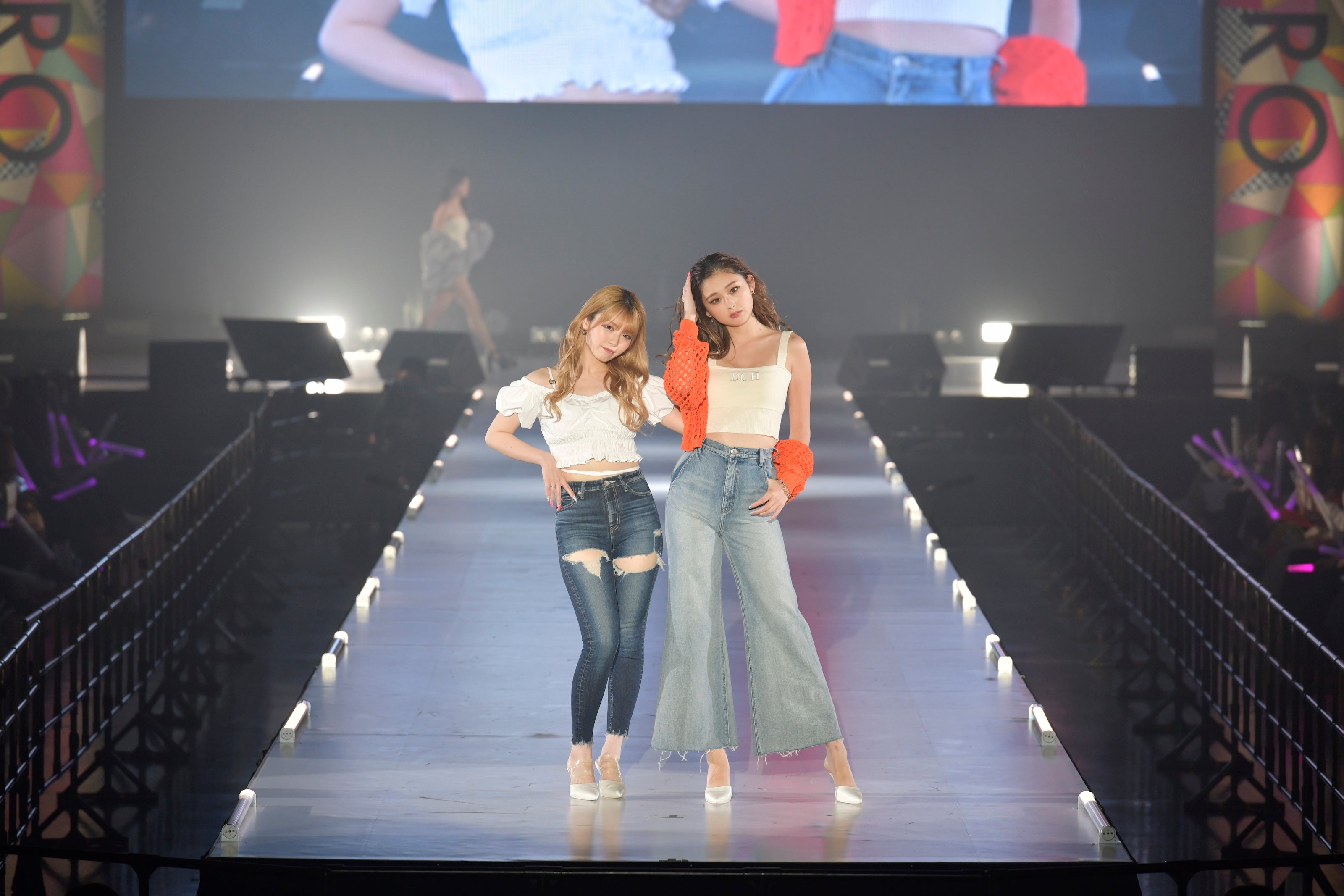 「GYDA STAGE」ではヘルシーなへそ出しコーデのゆうちゃみ&ゆいちゃみ姉妹がランウェイに登場!景井ひな、ぴょな、中町綾、安斉星来らが鮮やかなカラーリングが目を引くカジュアルなスタイルを披露しました。