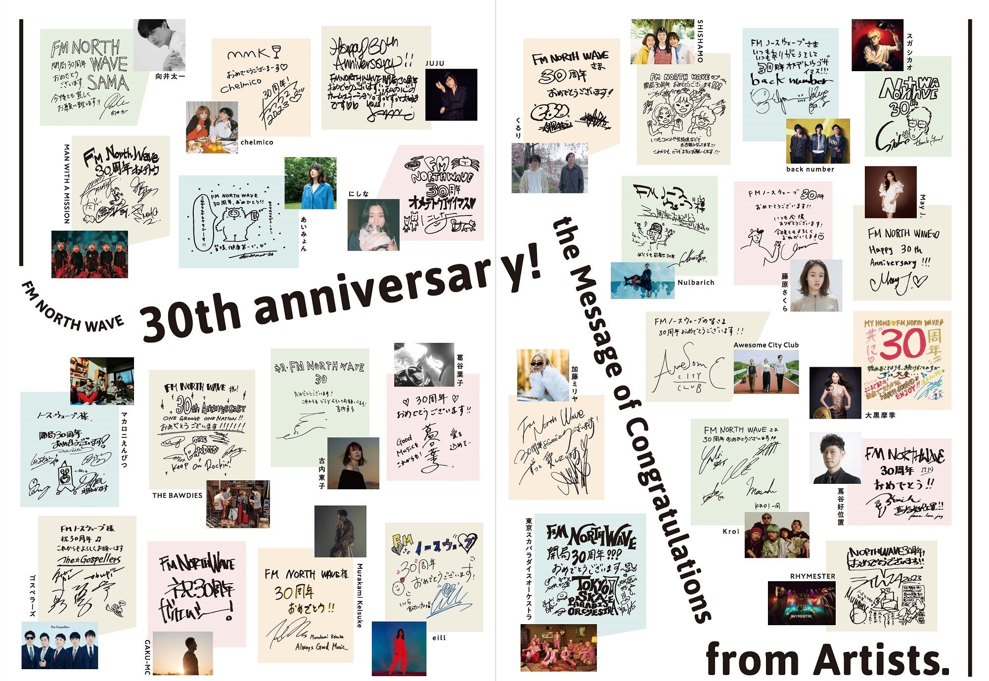 このプロジェクトでは、FMノースウェーブが開局から掲げるコンセプト【ONE GROOVE ONE NATION】をテーマに30周年記念ソングを制作し、開局記念日である2023年8月1日に発表する予定です。同局でレギュラー番組を担当しているTAKE(Skoop On Somebody)、Ms.OOJA、KEI_HAYASHI、Furui Riho、笠原瑠斗、DJヤマタの6組をヴォーカリストに迎えて制作します。また、参加アーティストが全員登場して30周年記念ソングを生演奏するお披露目イベントを8月上旬に予定しています。詳細については、後日弊社ホームページなどでお知らせいたします。