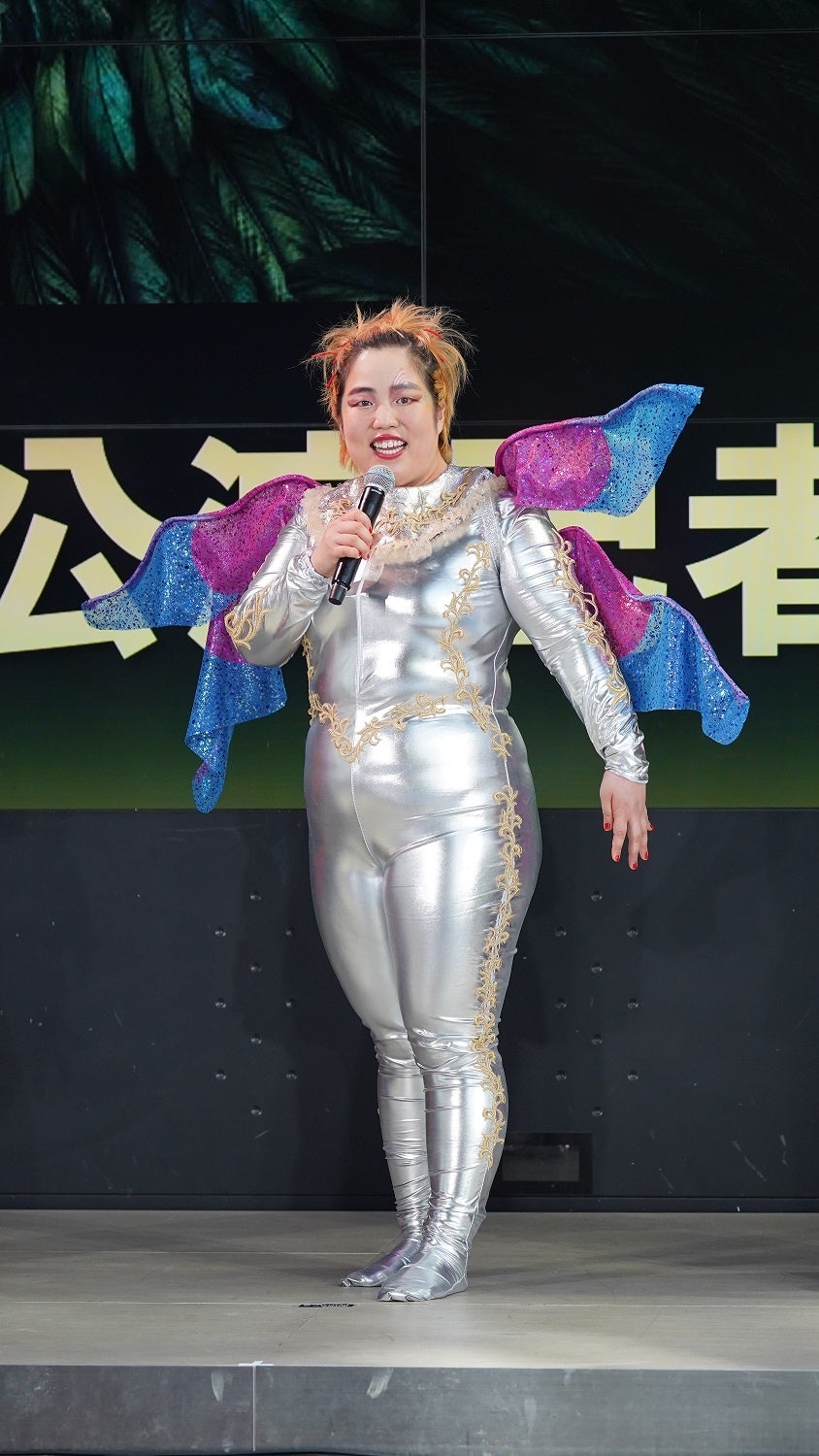 その後、本公演を盛り上げるスペシャルサポーターが登場。大阪公演のスペシャルサポーターを務めるゆりやんレトリィバァさんは、シルク・ドゥ・ソレイユ風のアレグリアにインスパイヤ―された衣裳で登場。会場中がざわつく中、「今日は急きょ、関西テレビの衣装にアレグリア完全再現で作っていただきました。ゆりやん改め、ゆりグリアです(笑)。アレグリアでは、人生が変わる体験をしてもらえると思います。アレグリアにぜひ、来てグリア!!」と爆笑PRを繰り広げ、会場の笑いを誘いました。