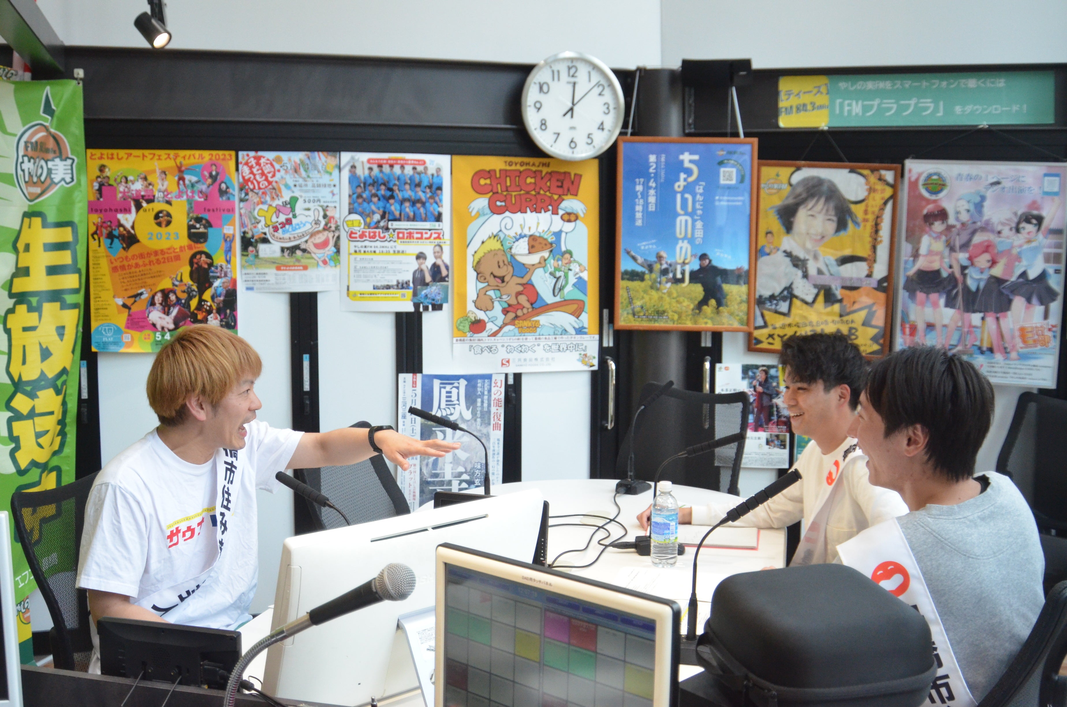 「豊橋市住みます芸人」として4月から愛知県豊橋市に移住し、活動しているお笑いコンビ「ブロードキャスト‼」の吉村憲二さん(44)と、若手コンビ「ASANA(アサナ)」のナミトさん(24)、久保さん(24)が5月5日(金)から、やしの実FM(エフエム豊橋)で冠番組を始めました。毎週金曜正午から30分、原則生放送です。3人は豊橋の魅力や話題、体験をレポートするほか、「豊橋出身者をゲストに迎えたい」と張り切っています。
