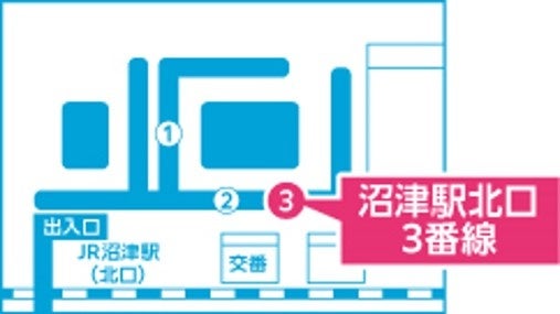乗車場所:沼津駅北口バス乗り場(3番線)