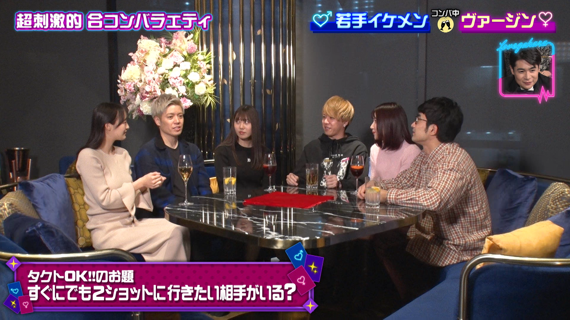 スタジオでは、吉村、澄田綾乃、名取くるみ、黒木麗奈、そしてゲストのコロコロチキチキペッパーズ(西野創人、ナダル)が合コンの模様をウォッチングします。