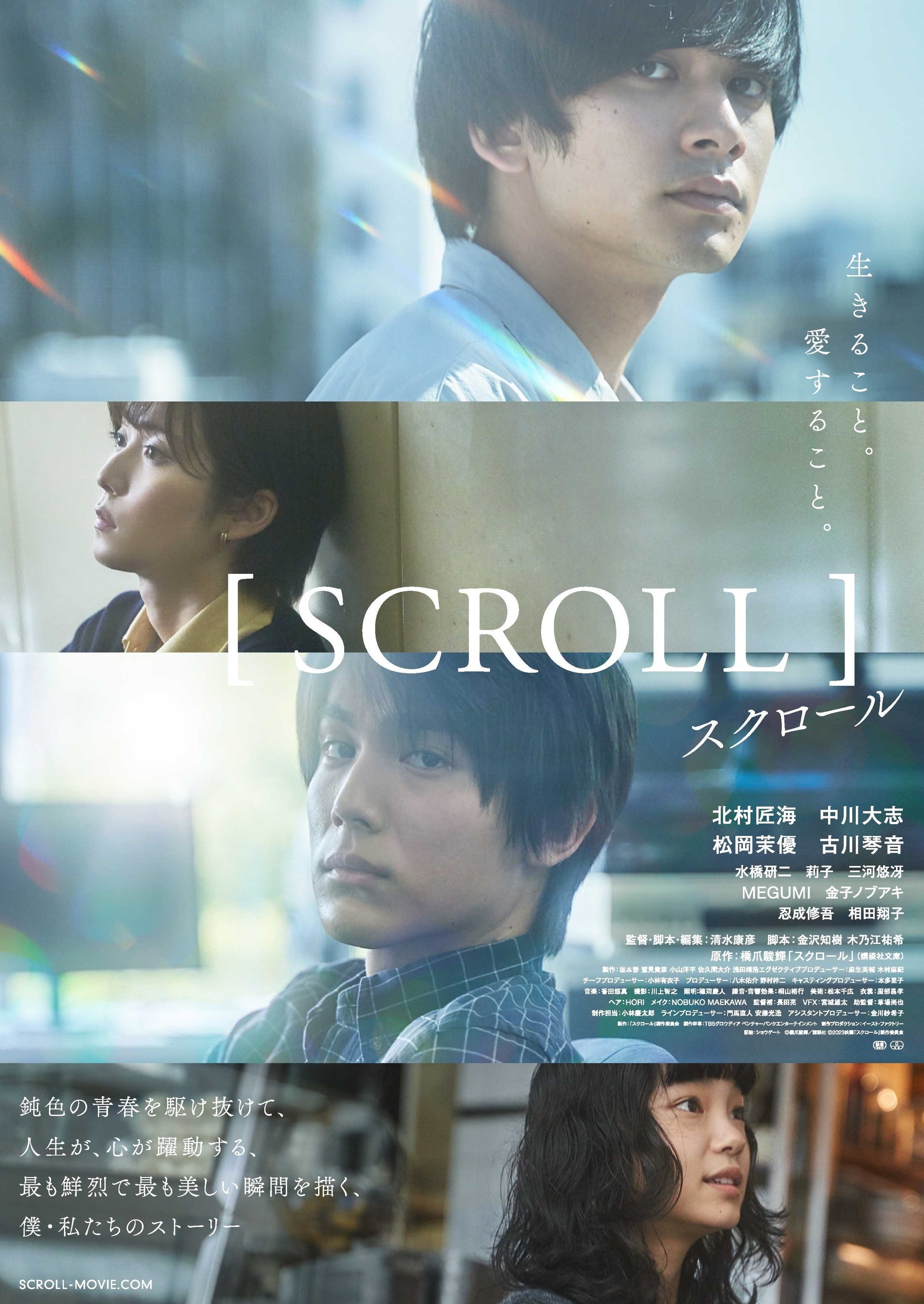 W主演のひとり、北村匠海は、ダンスロックバンド「DISH//」のリーダーを担当する一方、第41回日本アカデミー賞で『君の膵臓をたべたい』(17)での新人俳優賞受賞をはじめ、近年では2021年の実写映画興行収入第1位を獲得した『東京リベンジャーズ』(21)で主演を務めるなど、俳優としても活躍の幅を広げています。一方、中川大志は、『坂道のアポロン』(18)、『覚悟はいいかそこの女子。』(18)で第42回日本アカデミー賞新人俳優賞を受賞し、NHK大河ドラマ「鎌倉殿の13人」(22)、TBS日曜劇場「オールドルーキー」(22)など話題作への出演が続いています。そのほか、これまで数々の映画賞を受賞してきた松岡茉優と、話題作への出演が続く古川琴音の競演も話題となった映画『スクロール』、待望の配信とDVD&Blu-ray発売が決まりました。