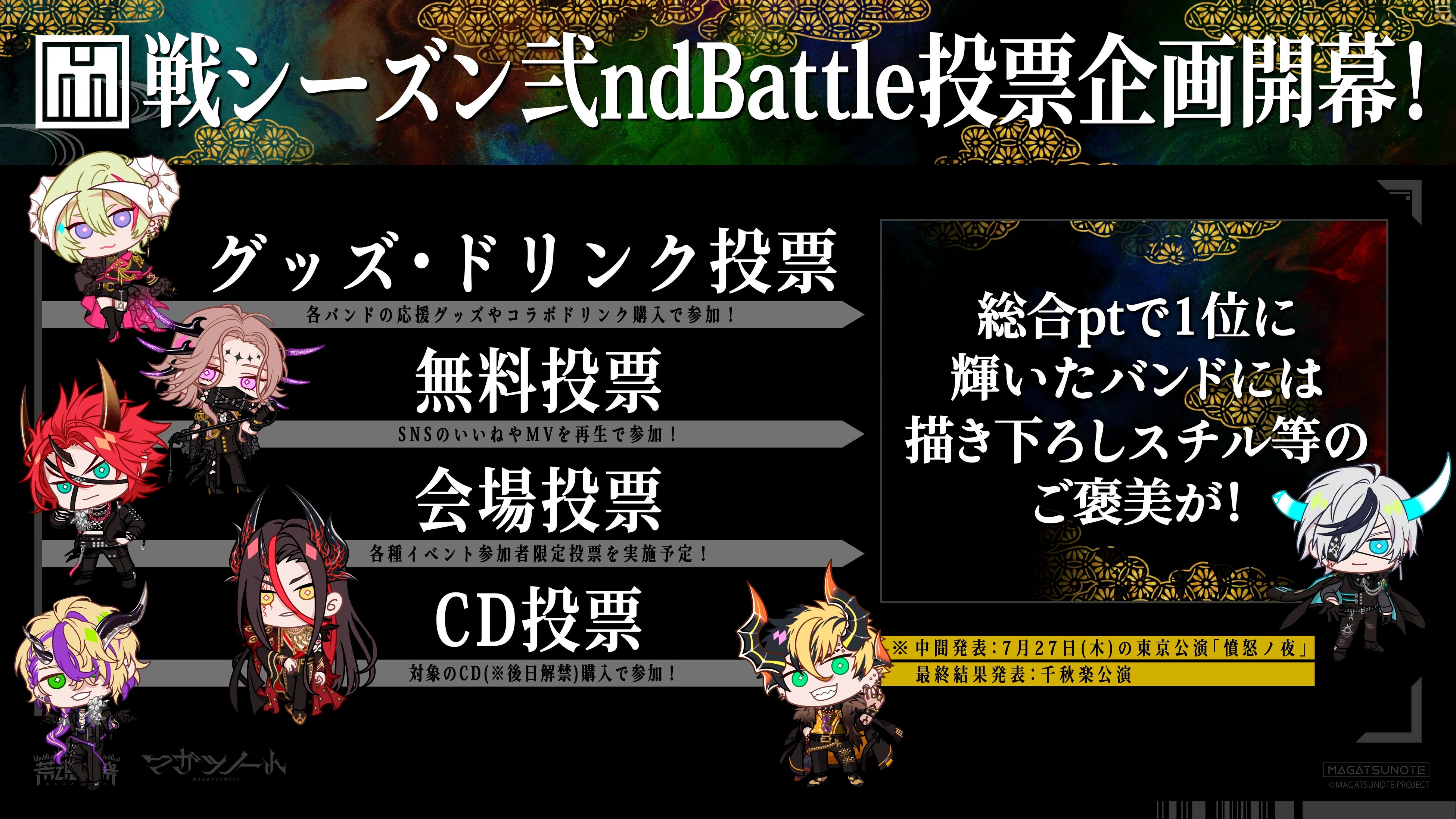 投票の最終結果は、「マガツノート全国巡業二〇二三 荒魂決起會」の千秋楽公演で発表いたします。