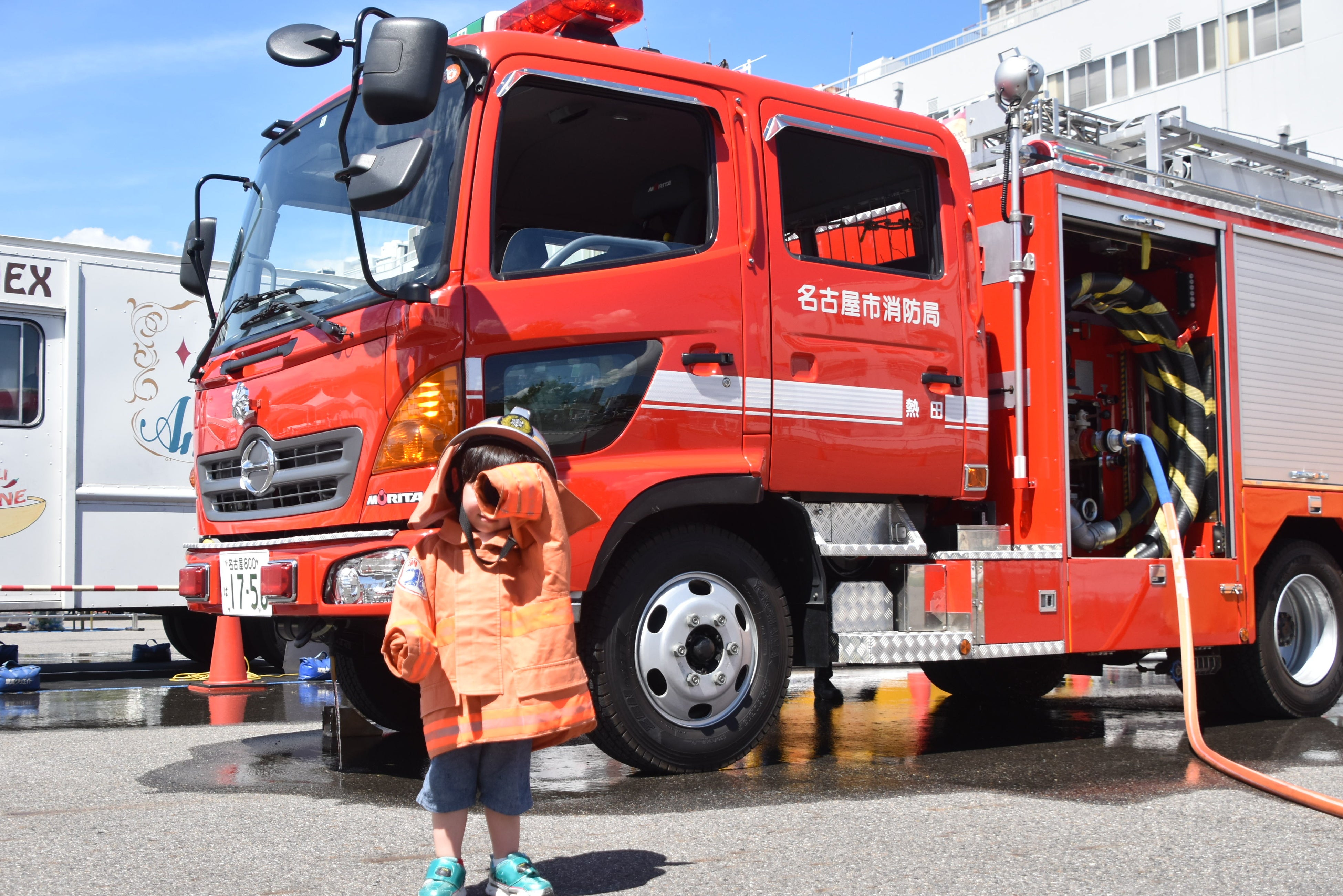 ・「ちびっこ防火服の試着」防火服を着て、消防士になりきろう!