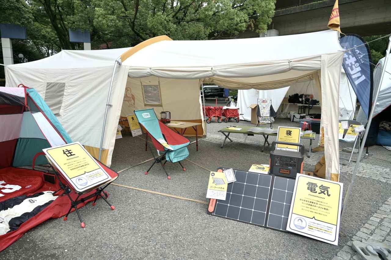 ・災害時に役立つキャンプギア展示、防災模試