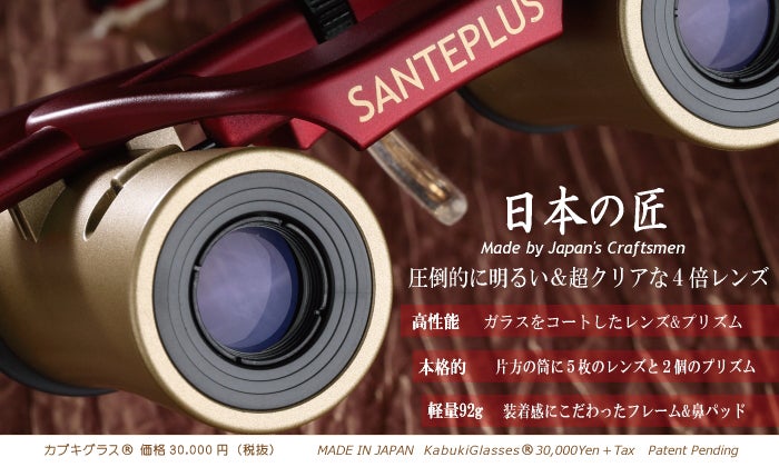 「カブキグラス」は、坂田氏自らの観劇体験を元に、どの席から見ても「席をアップグレードしたい」という思いを実現させるために日本の様々な分野の匠の技術を結実して制作された究極のシアター&スポーツグラスです。