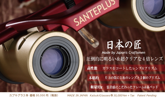 「カブキグラス」は、坂田氏自らの観劇体験を元に、どの席から見ても「席をアップグレードしたい」という思いを実現させるために日本の様々な分野の匠の技術を結実して制作された究極のシアター&スポーツグラスです。