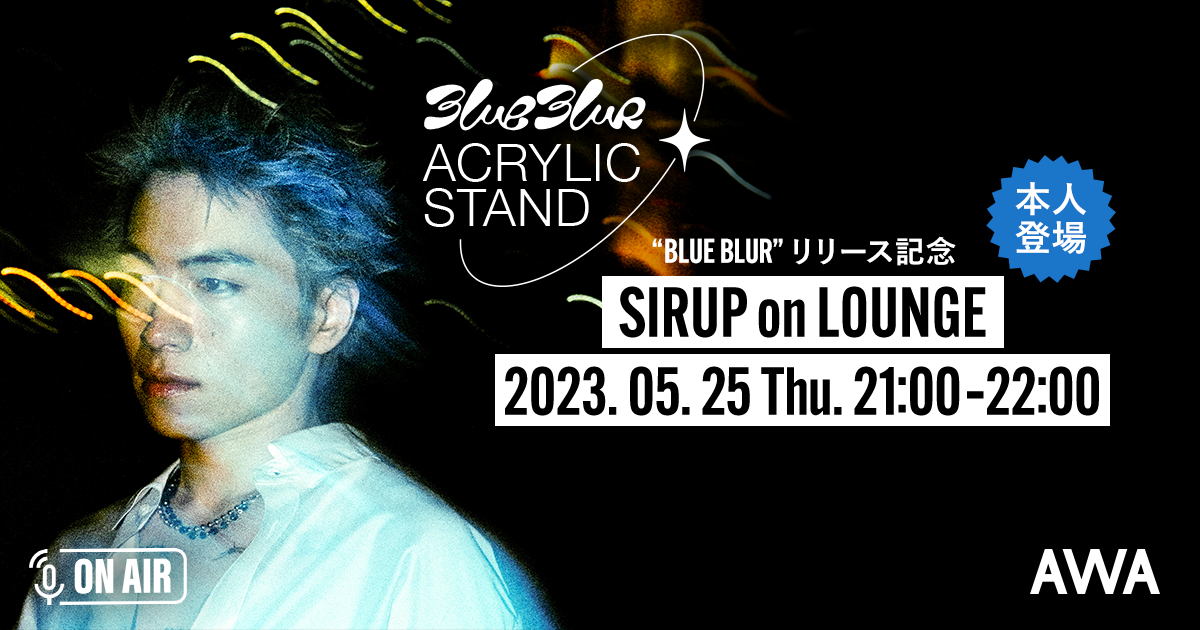 今回のイベントは、EP「BLUE BLUR」の配信とツアーを記念して開催されるもので、これまでのSIRUPの楽曲を一挙オンエアいたします。本イベントには、リアルタイムでSIRUPが音声とチャットで参加。このイベント内で、320以上(3,200円)のフラワーチャットをした参加者には、このイベントでしか手に入らない、「BLUE BLUR」のアクリルスタンドをもれなくプレゼントします。ラウンジは、どなたでも参加することができ、AWAアプリを事前にダウンロードしていれば、リクエストやアーティストとの交流など、よりお楽しみいただけます。ぜひ、SIRUPのラジオ配信ラウンジをお楽しみください。