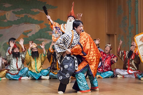 高槻城公園芸術文化劇場開館を記念し、狂言大蔵流の名門「茂山千五郎家」が集結する狂言会を開催します。最も登場人物が多い狂言の曲「唐相撲」などを総勢約40名の出演者で熱演します!ぜひお越しください。
