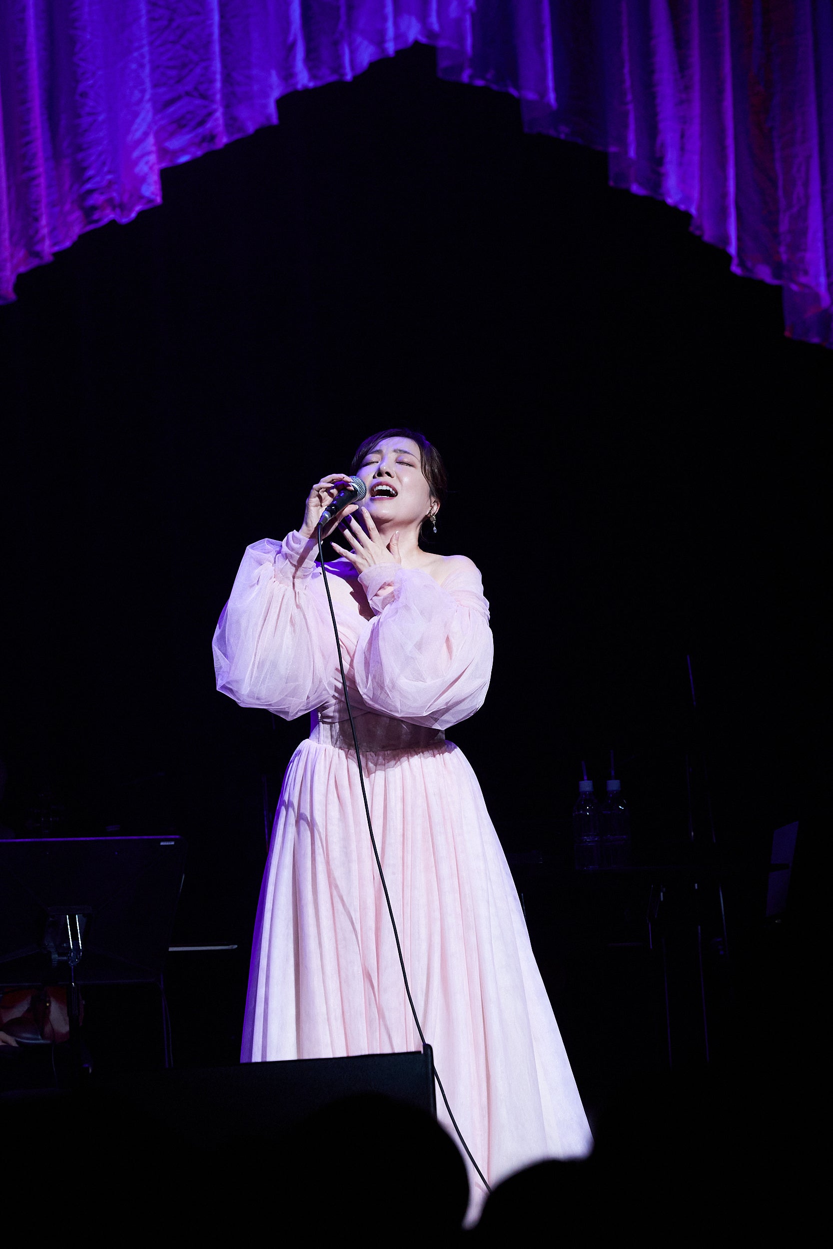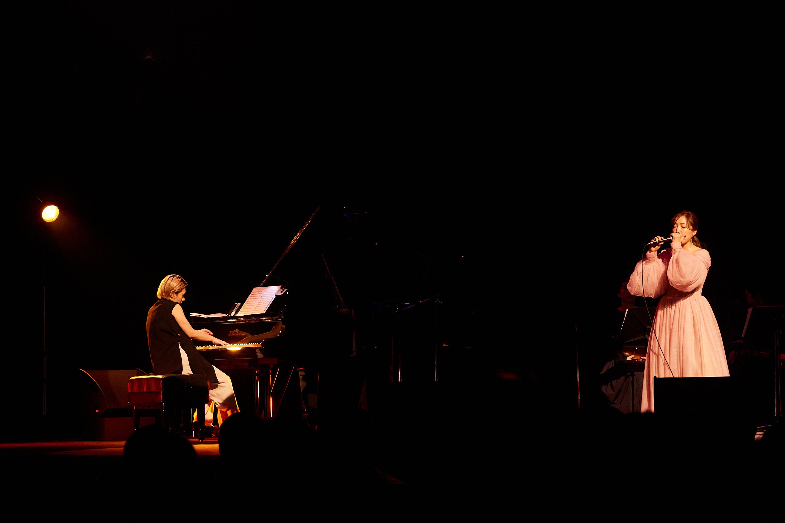 圧倒的な声量と、演劇的と言えるほど豊かな表現力。ピアノと弦楽四重奏を従えて「おひさま~大切なあなたへ」を歌い、「キミへ」を歌う。「キミへ」は、誰かの夢を応援するテーマで書かれた曲だが、家族のために頑張る母親のイメージもそこに重なるという、ピアノと弦楽四重奏によるとても美しいバラード。一転してチック・コリアの名曲カバー「アランフェス協奏曲~Spain」は、同じ音楽大学系の高校の同窓生である桑原あいと共に、超絶技巧満載のスリリングな歌とピアノのパフォーマンスで観客を沸かせる。