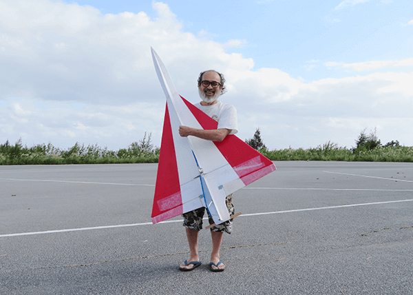 • 開発者「知名 宏師(ちな ひろし)」とラジコン飛行機