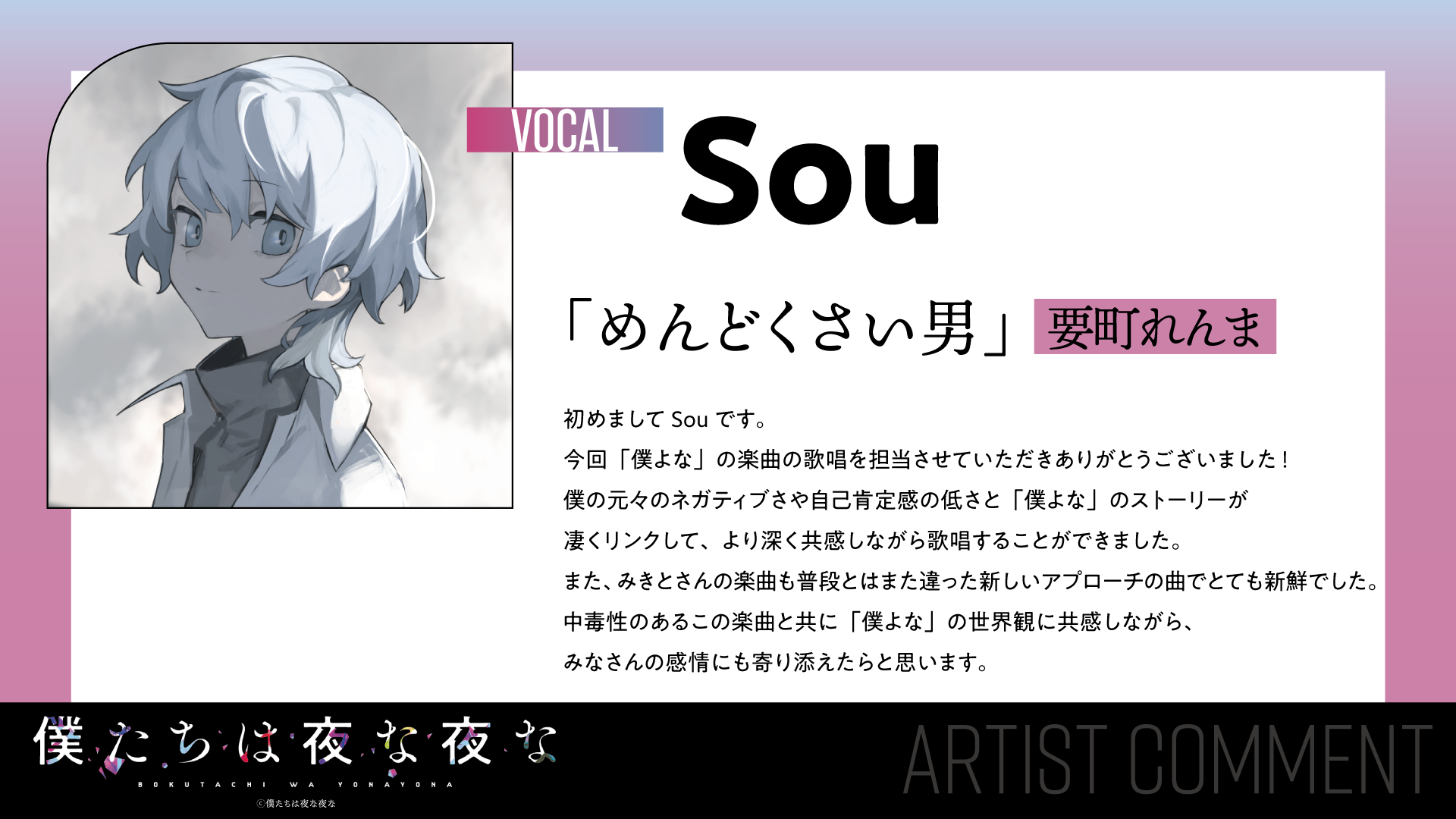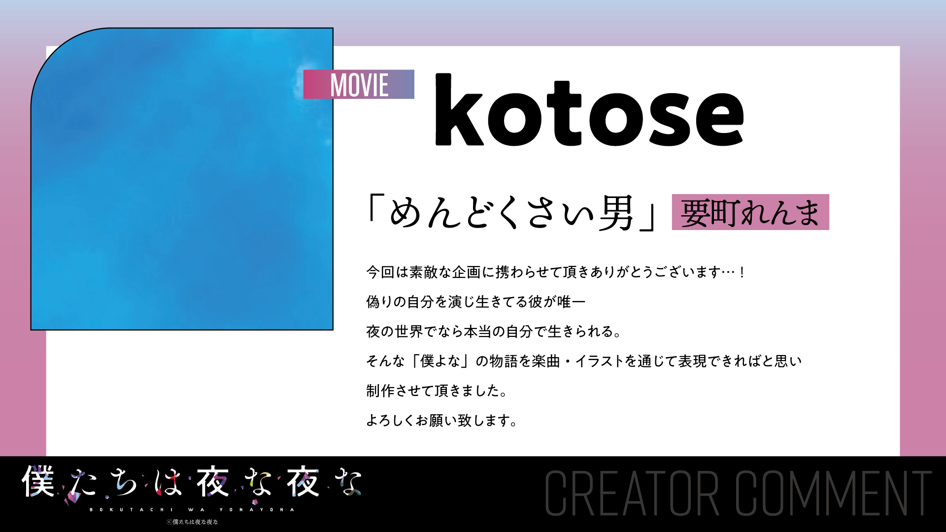 キャラクターが抱えている「苦悩」を声優ボイス付きショート動画で吐露し、ボカロP×歌い手によって「感情」が歌になる! 本当の自分を解放する共感性ドラマコンテンツ『僕たちは夜な夜な』(通称『僕よな』)。