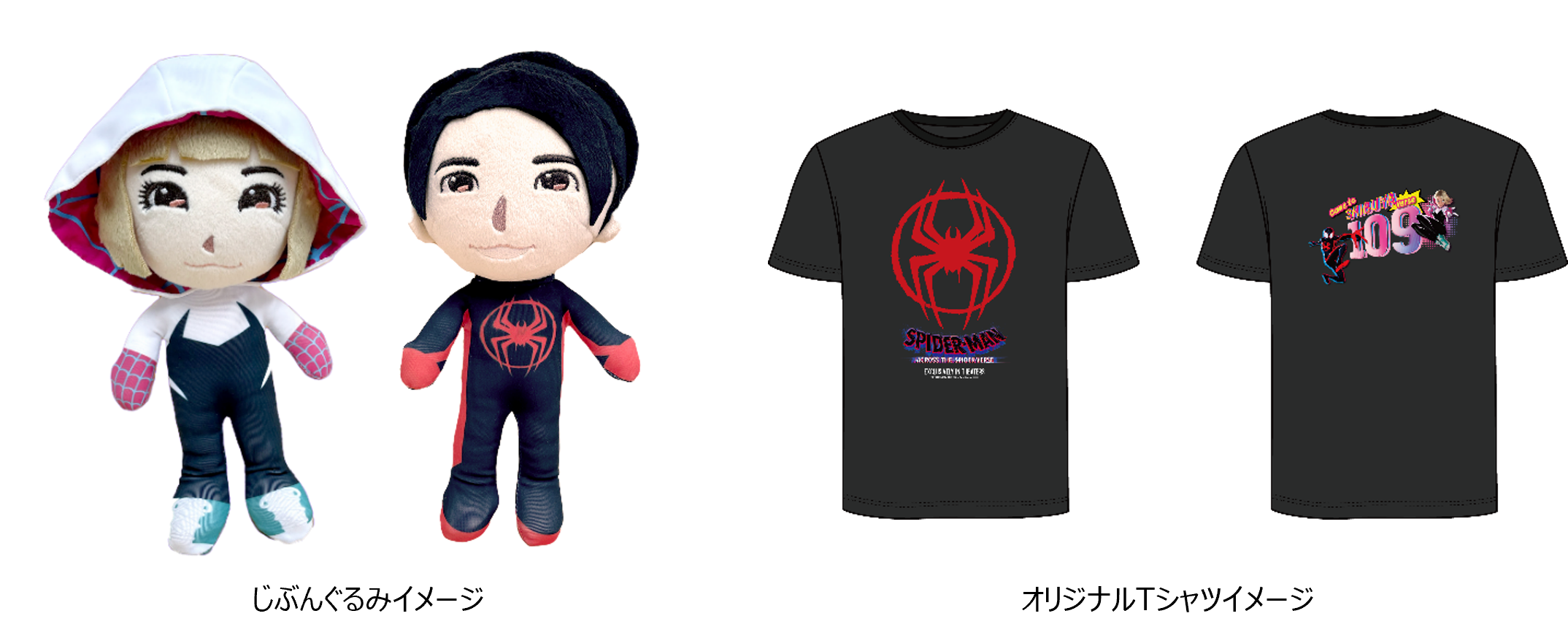 SHIBUYA109公式Twitterにてご応募いただけるプレゼント企画。抽選で計2名様に、『スパイダーマン:アクロス・ザ・スパイダーバース×SHIBUYA109キャンペーン』オリジナル『じぶんぐるみ』を、計40名様に『オリジナルロゴ入りキャンペーンTシャツ』をプレゼントいたします。