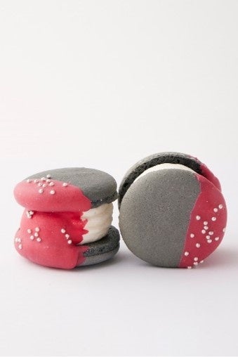 ブラックのマカロンをストロベリーチョコにディップ!