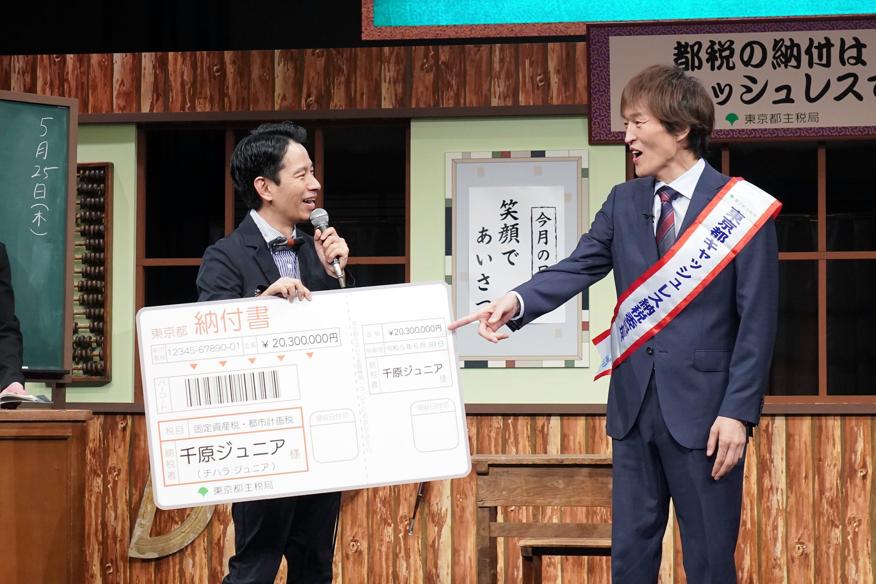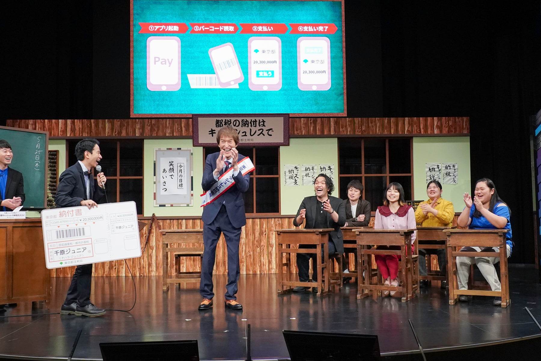 東京都主税局と吉本興業株式会社は5月25日(木)、ヨシモト∞ホールにて、キャッシュレス納税PRイベント「千原ジュニアと学ぶ!東京都キャッシュレス納税のススメ」を開催しました。