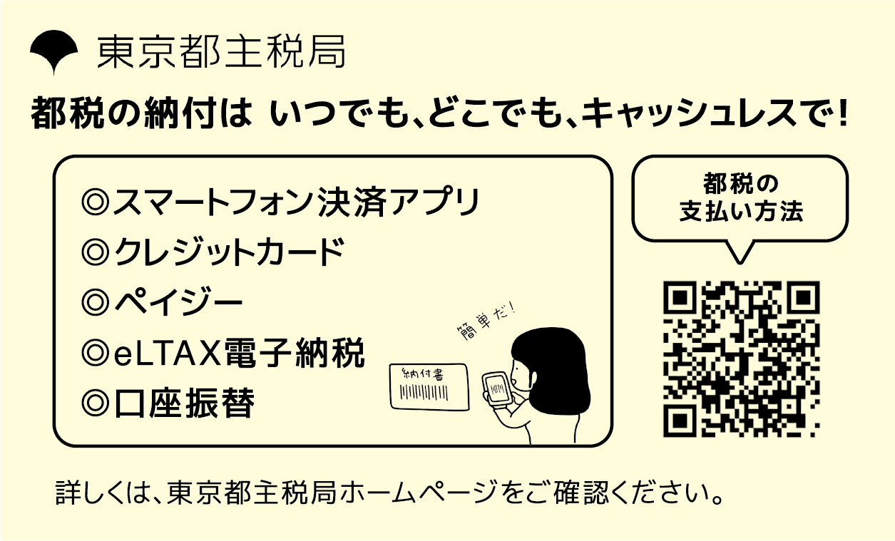 都税の納付は、キャッシュレスなら「いつでも、どこでも、簡単に」できます。
