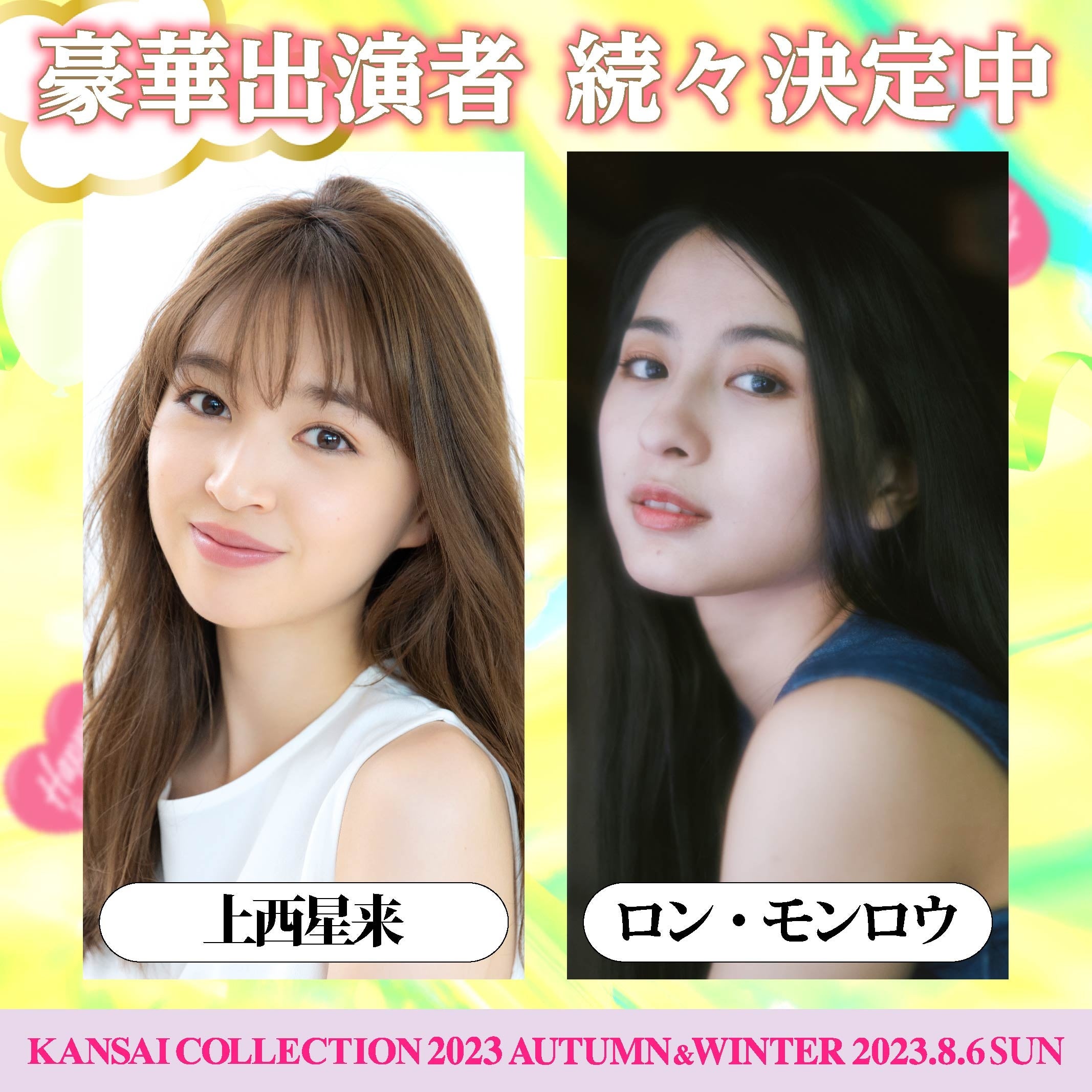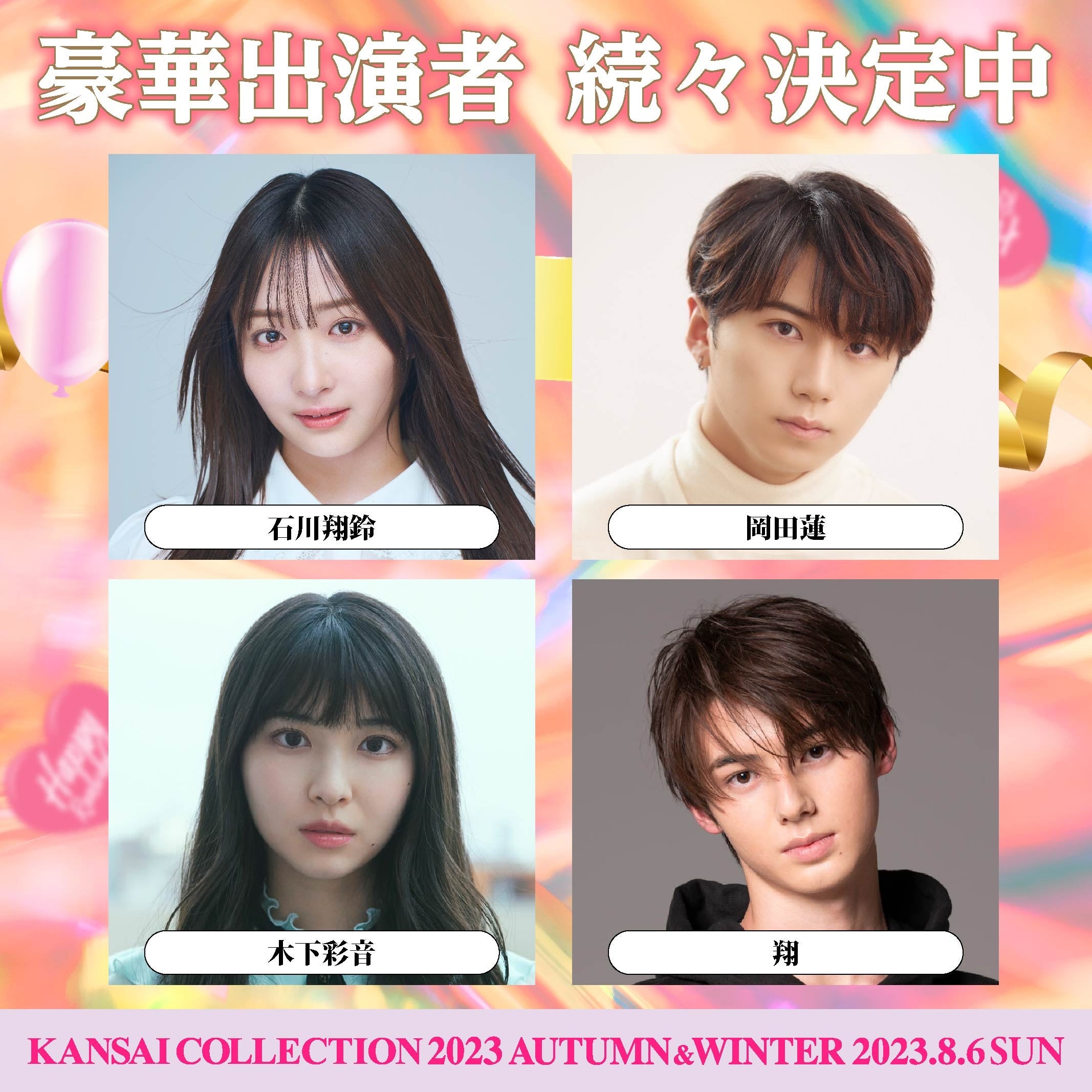 関西コレクション実行委員会(企画/制作:株式会社KANSAI COLLECTION)は、2023年8月6日(日)京セラドーム大阪にて、第25回目の記念開催となる『KANSAI COLLECTION 2023 AUTUMN&WINTER』を開催いたします。この度、追加出演者情報が決定しましたので、お知らせいたします。