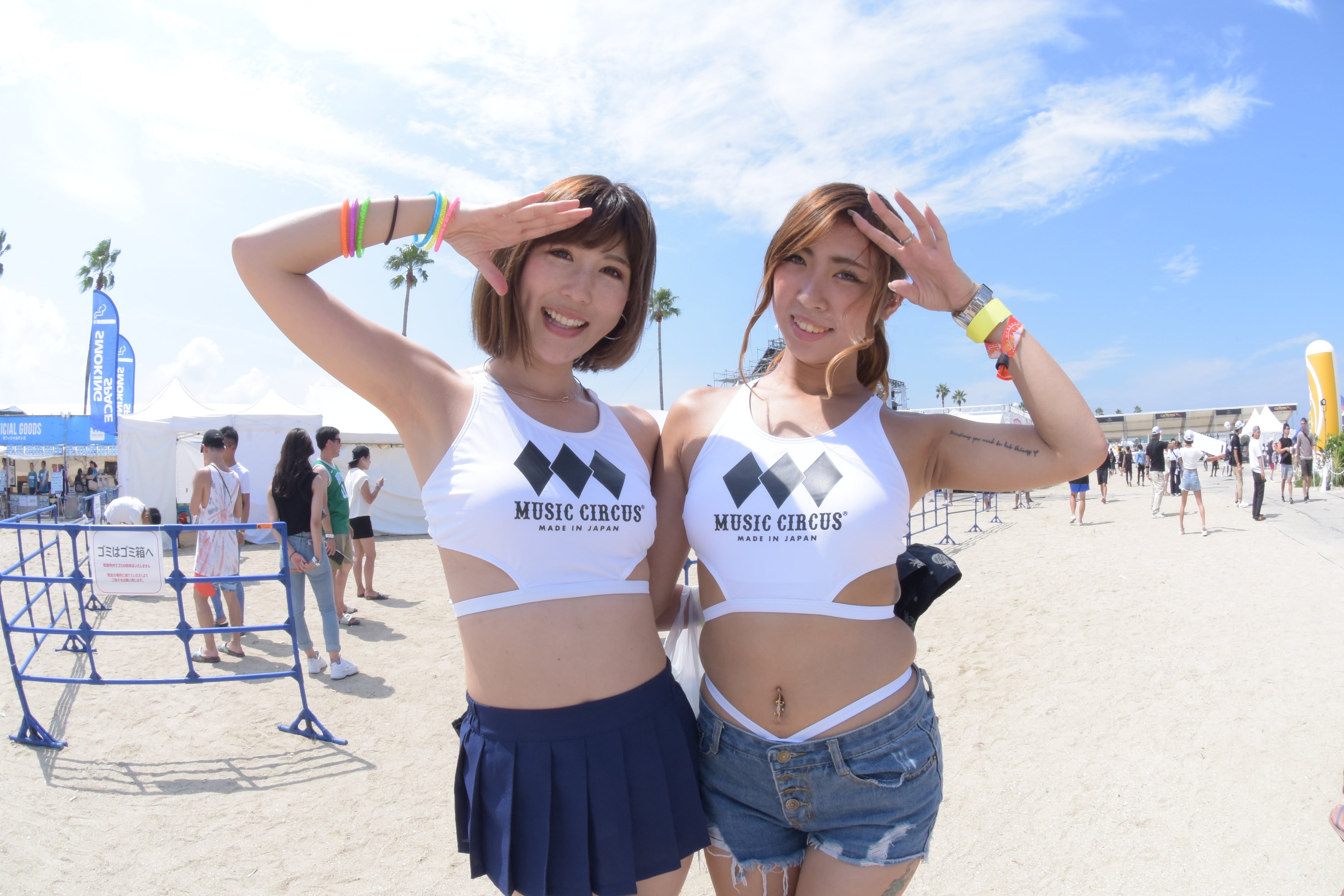 ずぶ濡れ前提で水着だけで参加する人や、フェスTシャツをアレンジして、お気に入りのビキニとコーディネートする人も。濡れても気分が上がるお出かけコーデなら何でもOK!