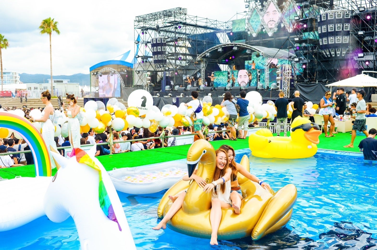 MUSIC CIRCUS’23は今年も楽しいコンテンツが目白押し。人気屋台グルメが集結するフードエリア、バナナボートなどのマリンアクティビティ、プールエリアも!1日では遊び尽くせない程充実のラインアップに、ますます夏が待ち遠しくなる!