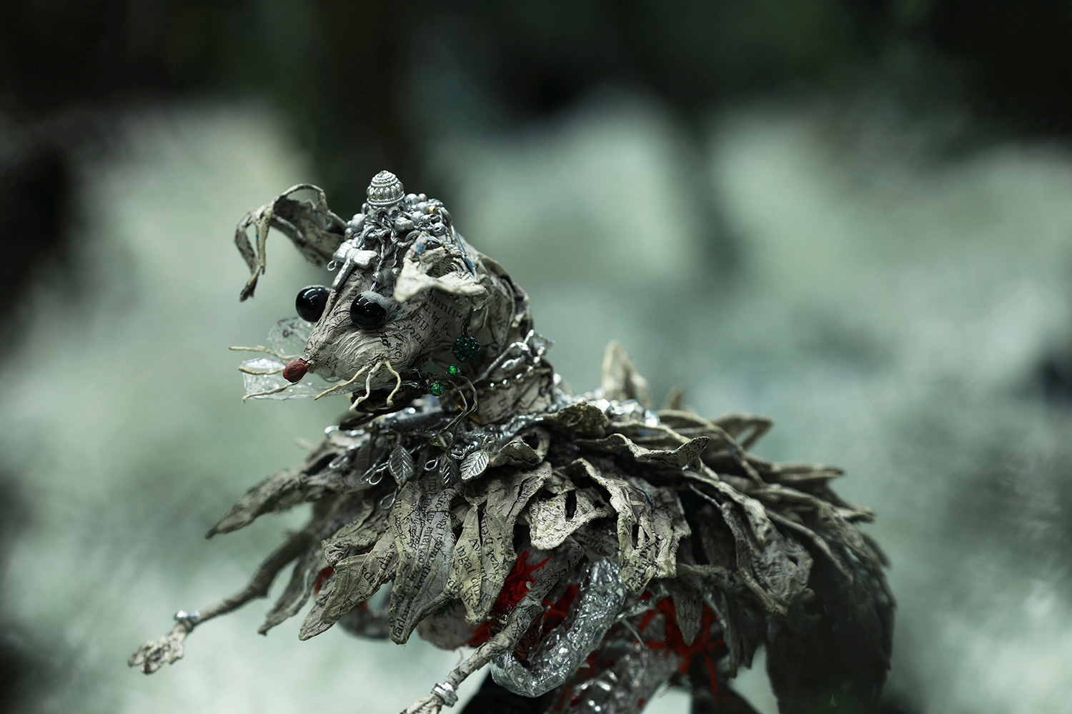本作は、台湾の民族パレード「Yi Zhen」のための衣装や台湾の祭事用衣装、東南アジアに伝わるマメジカがワニを騙して川を渡る民話、各国のそれに類似した物語などが元になっており、半分が人間で半分がネズミや狐のシャーマンダンサーが登場します。本作は、ハエの複眼で世界を視るように、異なる国の相互に関連する物語を同時に提示し、異なる立場で同じことを体験すること、固有の文化やアイデンティティについて考えさせ、普遍的な寓意体験とローカルな寓意体験のつながりなどを提示してくれます。