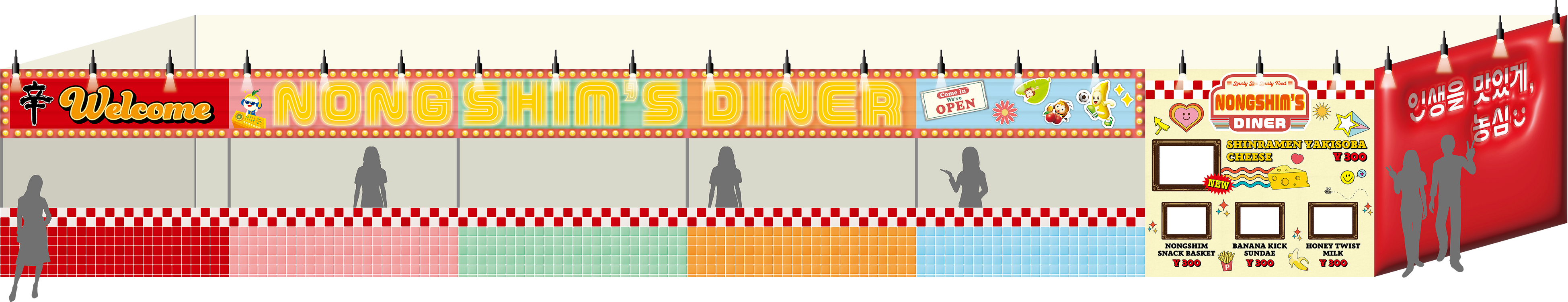 韓国発のバズフード、辛ラーメンがフードエリアをプロデュースし、ぷっくりしたデザインの「パデッドアイテム」のような壁のフォトスポットなど、韓国らしい空間でトレンドフードを楽しめます。さらに、新商品「辛ラーメン焼きそば チーズ カップ」を先行販売し、世界最速で体験することができます。その他にも韓国で人気のスナックをアレンジしたオリジナルメニューを多数用意いたします。