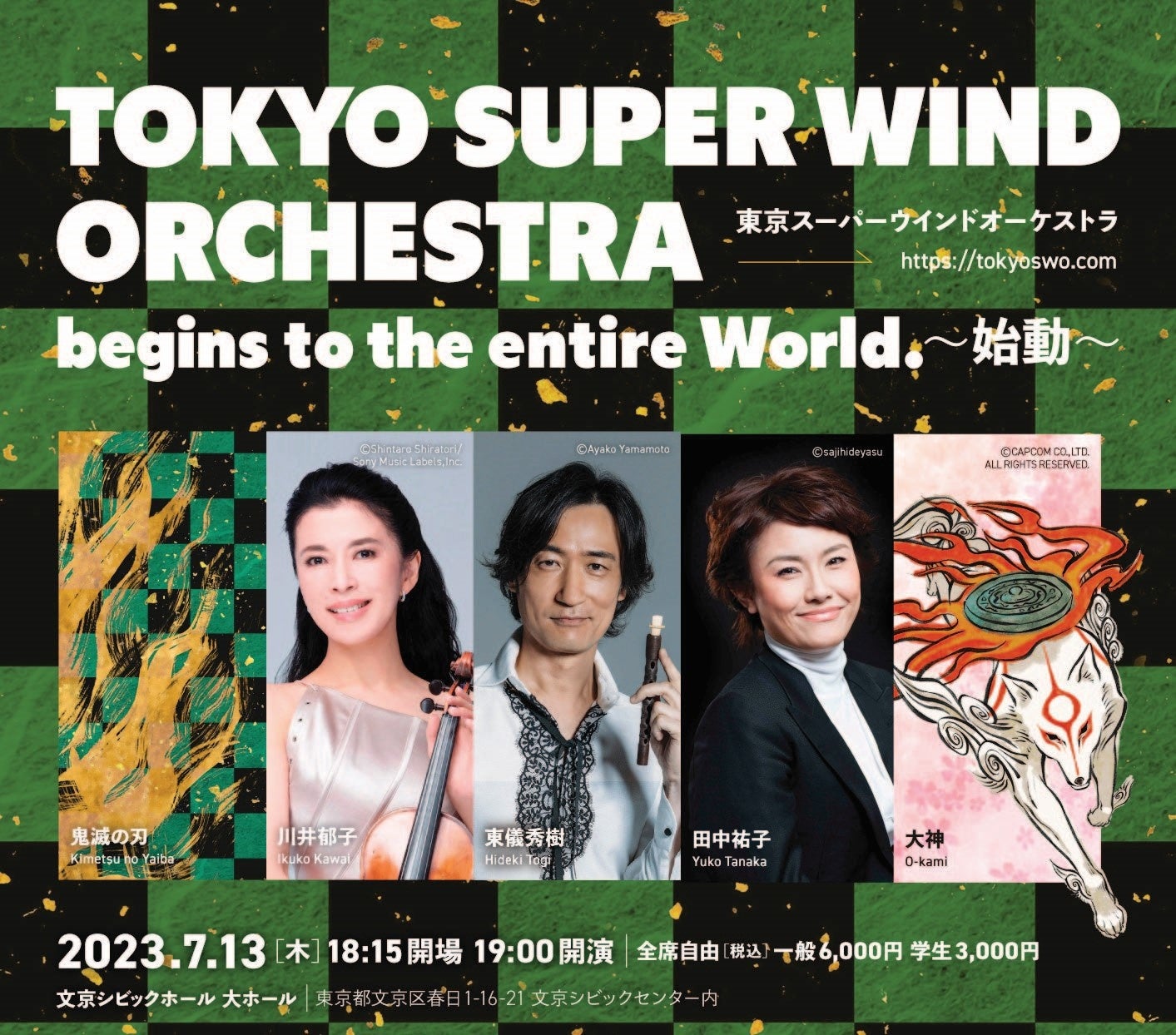 2023年7月13日(木)文京シビックホール 大ホールにて開催される、東京スーパーウインドオーケストラ オープニングコンサート「TOKYO SUPER WIND ORCHESTRA begins to the entire World.~始動~」の出演メンバーを発表いたします。東京スーパーウインドオーケストラは、東京、そして日本の魅力を世界に発信するために設立されたウインドオーケストラです。メンバーは、日本中のプロフェッショナルのオーケストラや吹奏楽団に所属する演奏家を中心に構成され、日本の管打楽器奏者の素晴らしい演奏、そして日本の音楽を東京から世界へ届けていきます。今後は、日本国内での年間を通しての公演開催、海外配信、海外公演だけでなく、管打楽器演奏者の育成、内外の管打楽器奏に携わる団体やアーティストとの交流や提携を行っていきます。