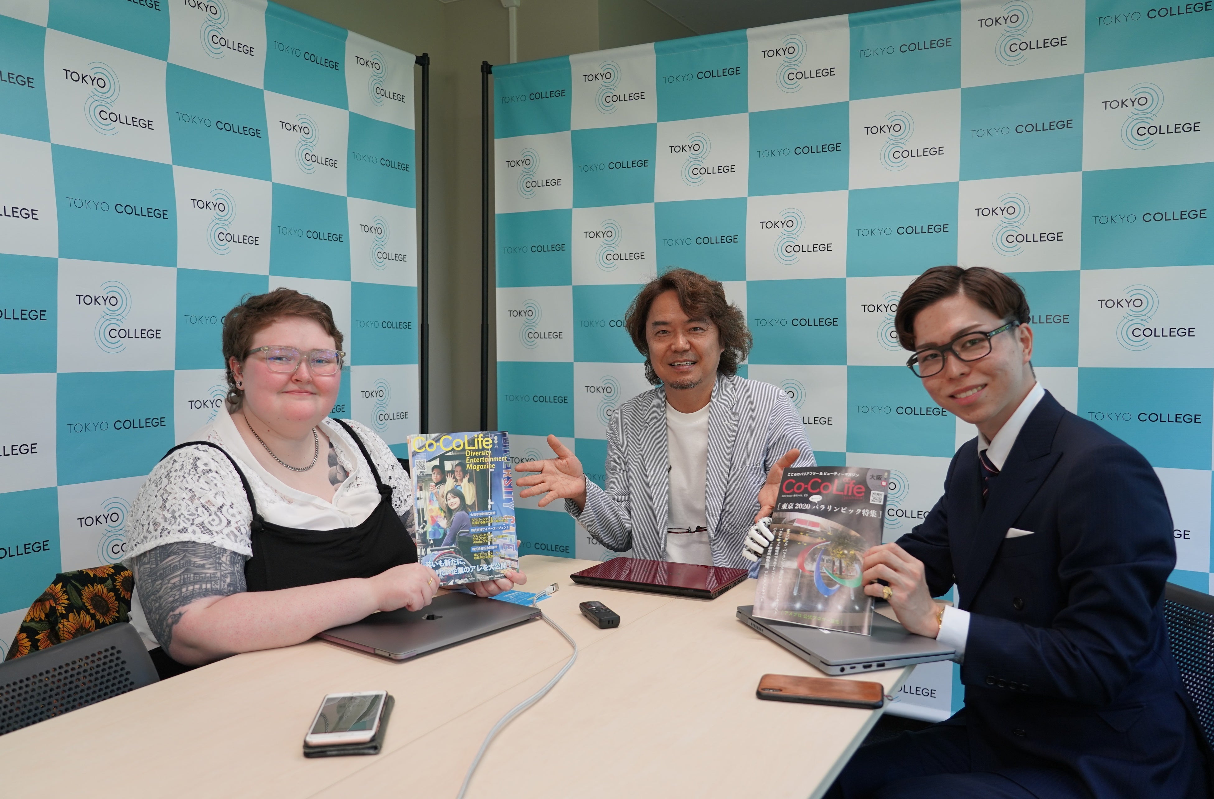 ココダイバーシティ・エンターテイメントが障がい・難病当事者の就労に積極的な会社ということで、東京大学「TOKYO COLLEGE」から取材依頼がありました。弊社代表の大倉伸三、所属タレントのやまもとくにひろが、東京大学本郷キャンパスで取材を受けました。