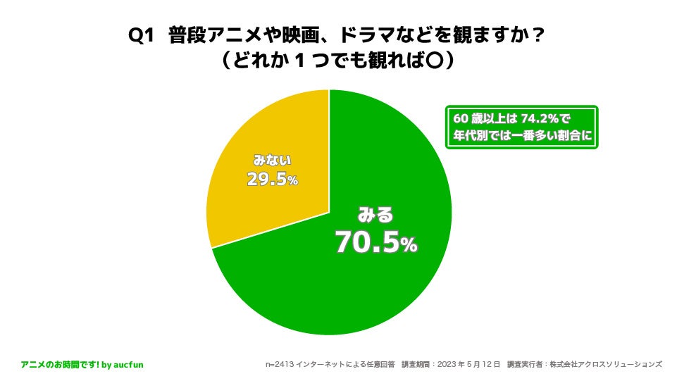 Q1 70.5%の人が何らかのかたちでアニメや映画、ドラマなどの映像作品を視聴していることが分かりました。