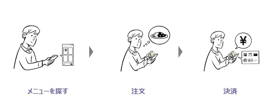 「モバイルオーダー」は、飲食売店に掲出するQR コードをお客さまのスマホで読み取り、メニューを