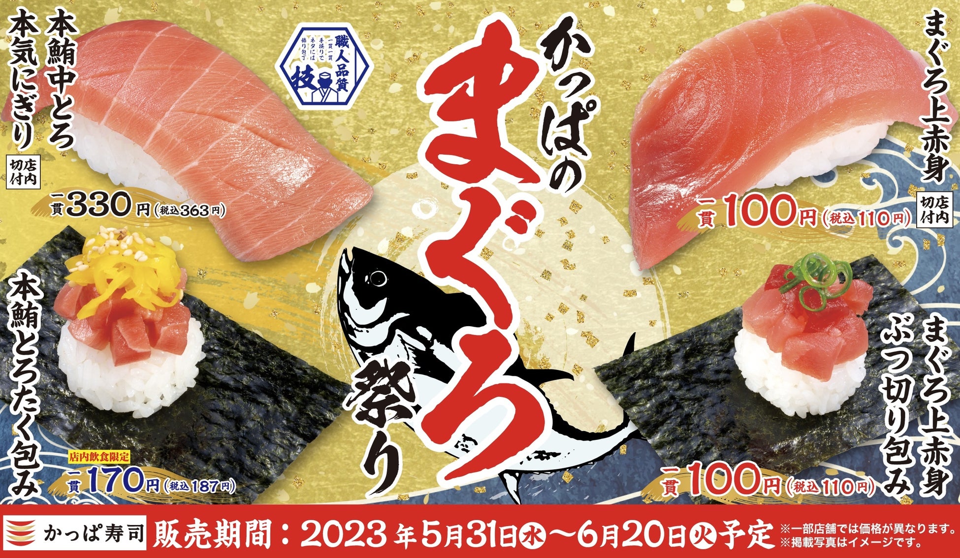 かっぱ寿司で人気ネタのひとつ「まぐろ」を存分にお楽しみいただける『かっぱのまぐろ祭り』を開催いたします。