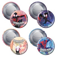 「オリジナル缶バッチ」の絵柄は全部で4種類。「スパイダーマン(マイルス・モラレス)」や「スパイダーグウェン(グウェン・ステイシー)」、「スパイダーマン2099(ミゲル・オハラ)」といった、映画に登場する『スパイダーマン』シリーズの人気キャラクターがデザインされています。