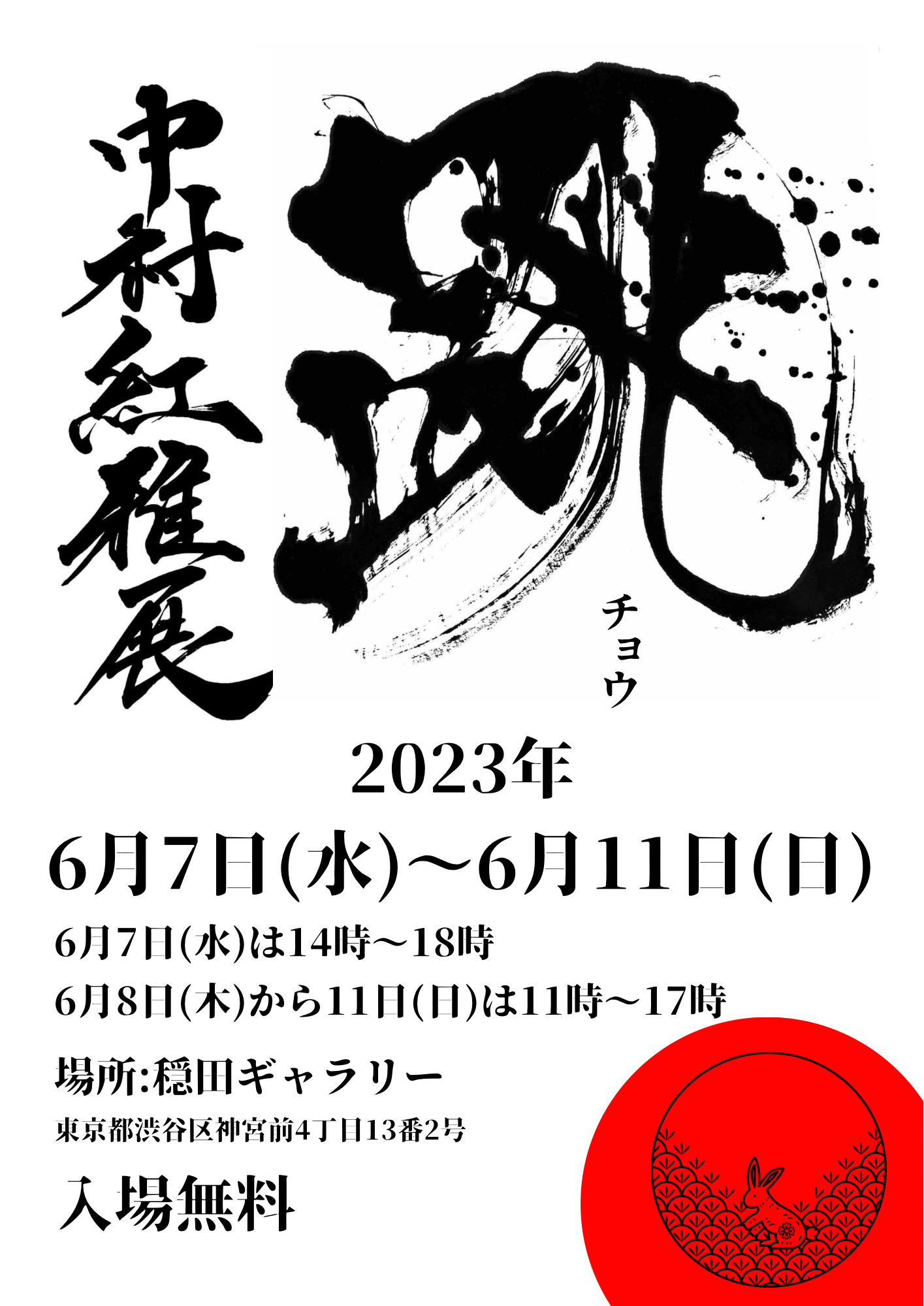 【書家 中村紅雅個展開催】中村紅雅展ー跳ー(チョウ)2023年6月7日(水)〜11日(日)穏田ギャラリーにて開催
