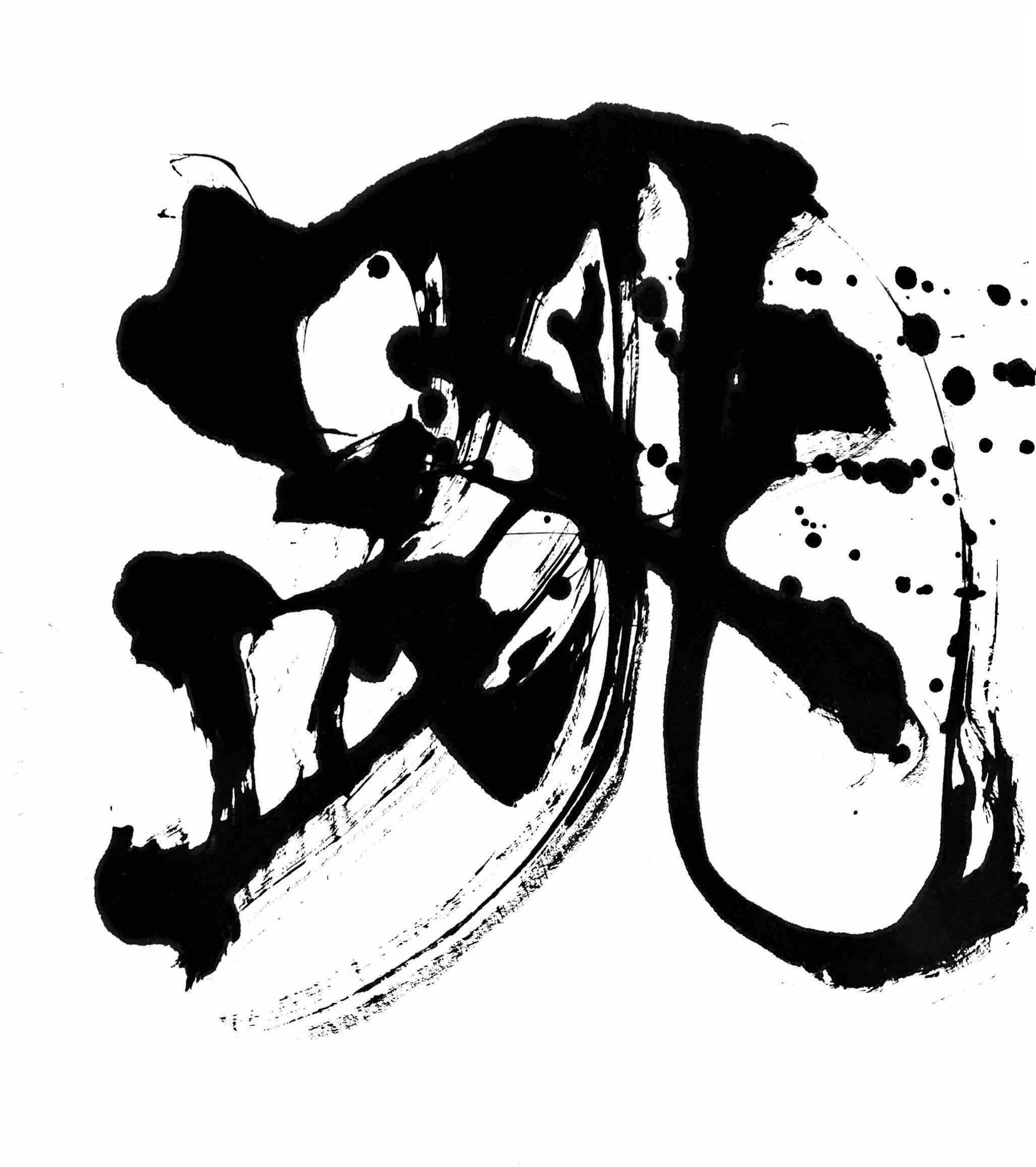 一番の注目作品は、書家中村紅雅自らの髪の毛を使いサブタイトル『跳』を書いた作品です。
