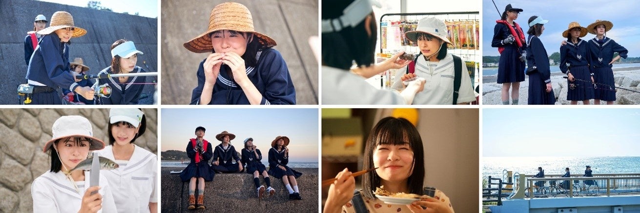 同時に解禁となった場面写真では、へっぴり腰ながらも果敢に釣りに挑んだり、初めての魚の餌(青虫)に絶句したりと、陽渚の頑張りが垣間見ることのできるシーンに加え、釣ったばかりの魚をほおばるシーン、海を背に黄昏れるシーンなど、どこか懐かしく日常を忘れられるようなほのぼのしたシーンが捉えられています。