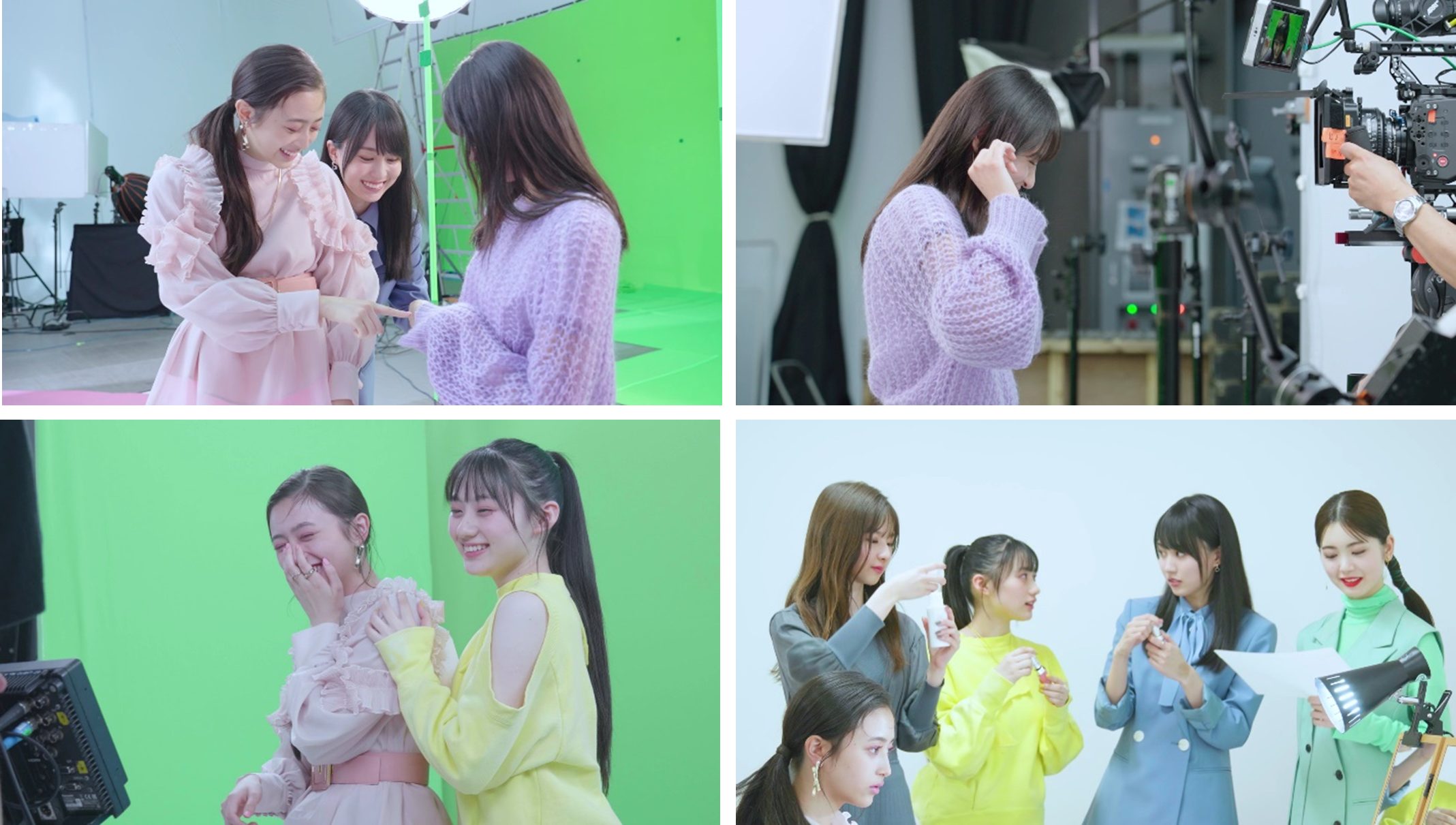 遠藤さん、賀喜さん、井上さんが撮影現場に入るとメイク室でのなごやかな表情とは一転し、熱心に台本を読み込む3人の姿が印象的でした。遠藤さんの撮影中、直前に起こったスタッフとのやりとりを思い出し、思わず吹き出してしまうかわいらしいNGシーンも。スタッフもつられて爆笑するなど、大盛り上がりの撮影現場でした。
